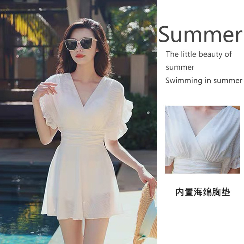 2024 새로운 도착 수영복 여성의 보수적 인 배꼽 덮음 슬리밍 빅 가슴 푸시 업 V-Neck 플러스 사이즈 수영복 박스