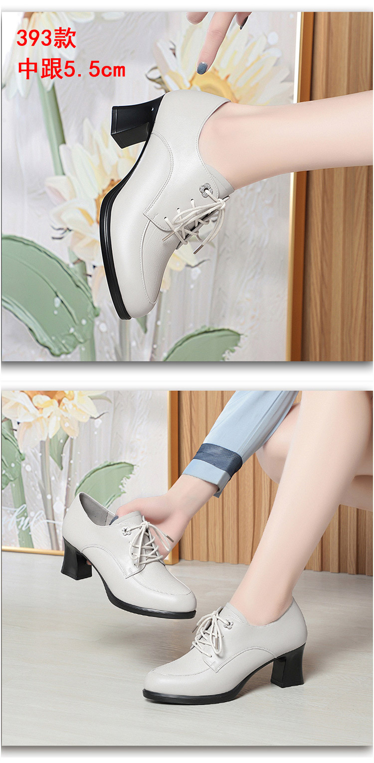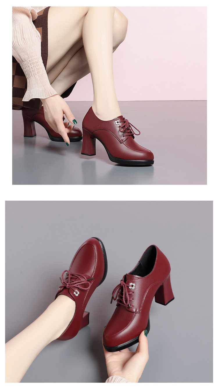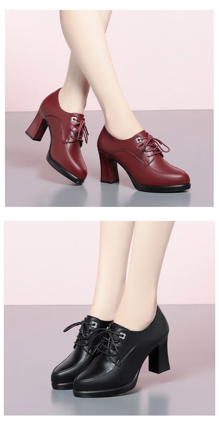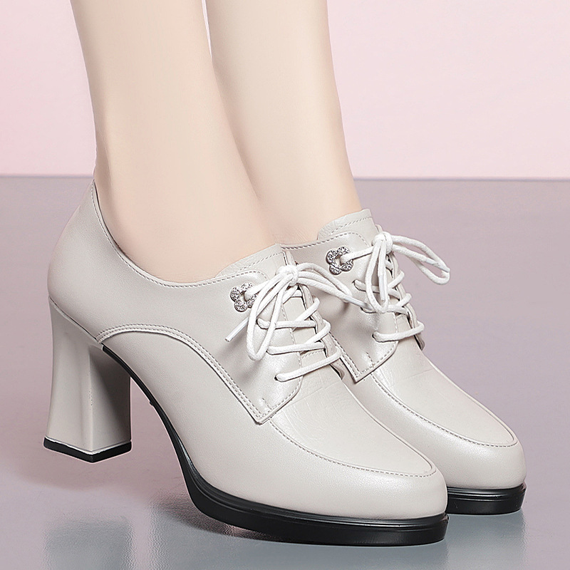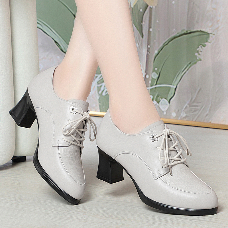 2024 년 새로운 여성 신발 봄과 가을 신발 중년 여성 하이힐 신발 레이스 업 여성용 가죽 신발스토어 가기