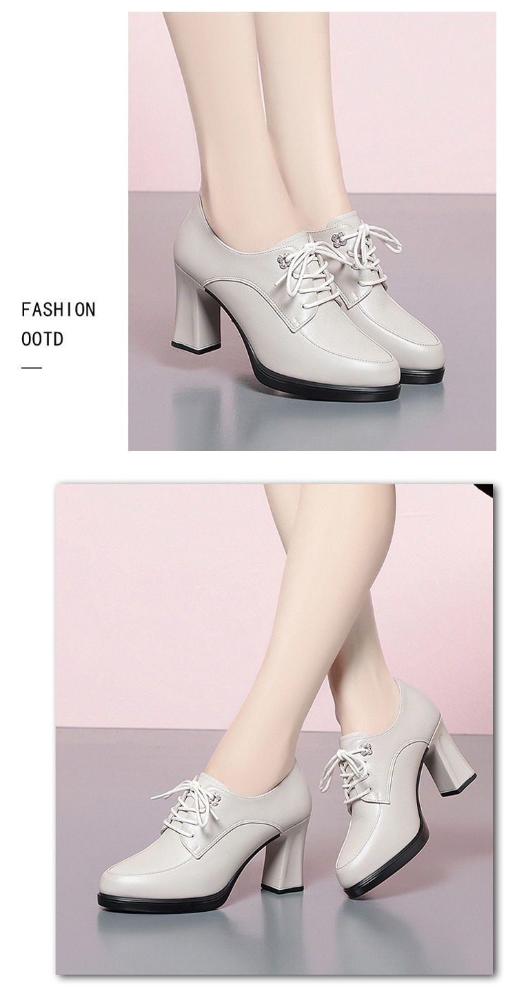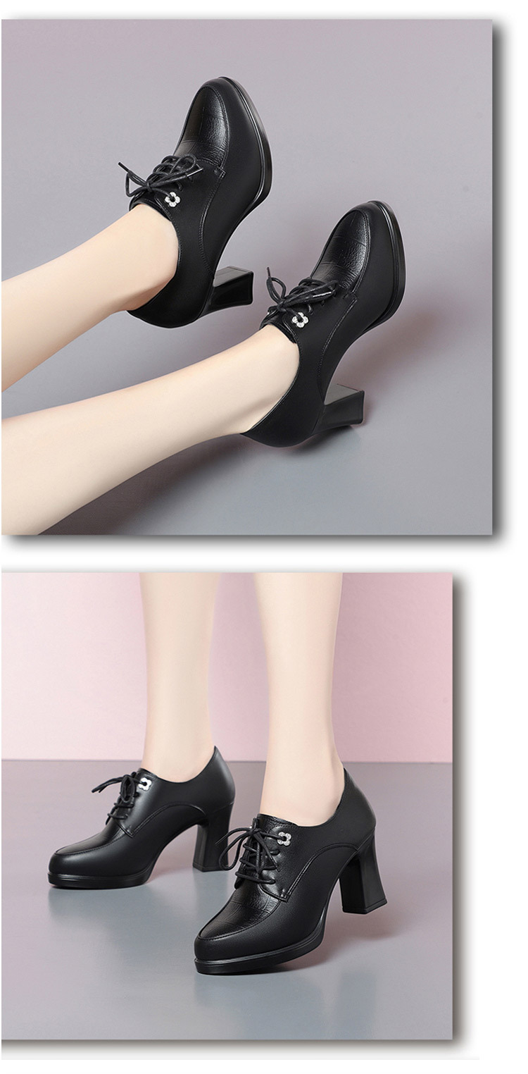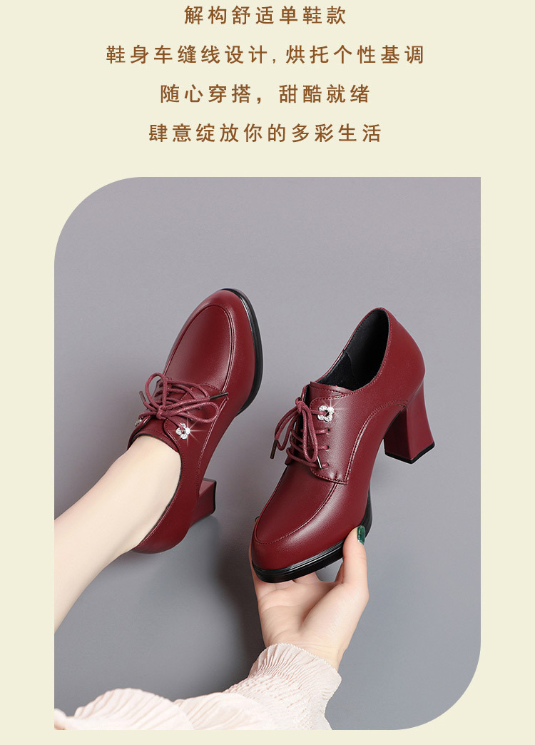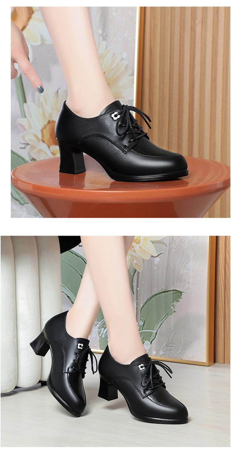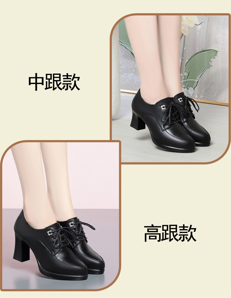 2024 년 새로운 여성 신발 봄과 가을 신발 중년 여성 하이힐 신발 레이스 업 여성용 가죽 신발스토어 가기