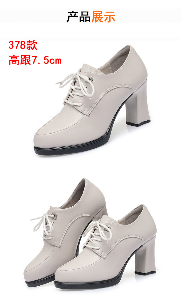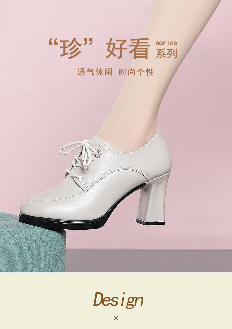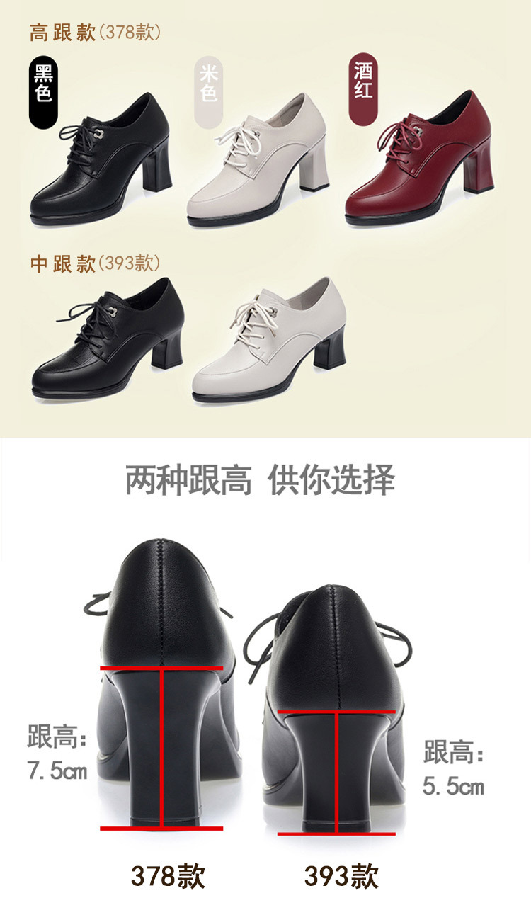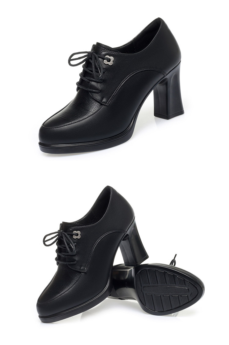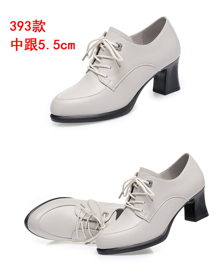 2024 년 새로운 여성 신발 봄과 가을 신발 중년 여성 하이힐 신발 레이스 업 여성용 가죽 신발스토어 가기