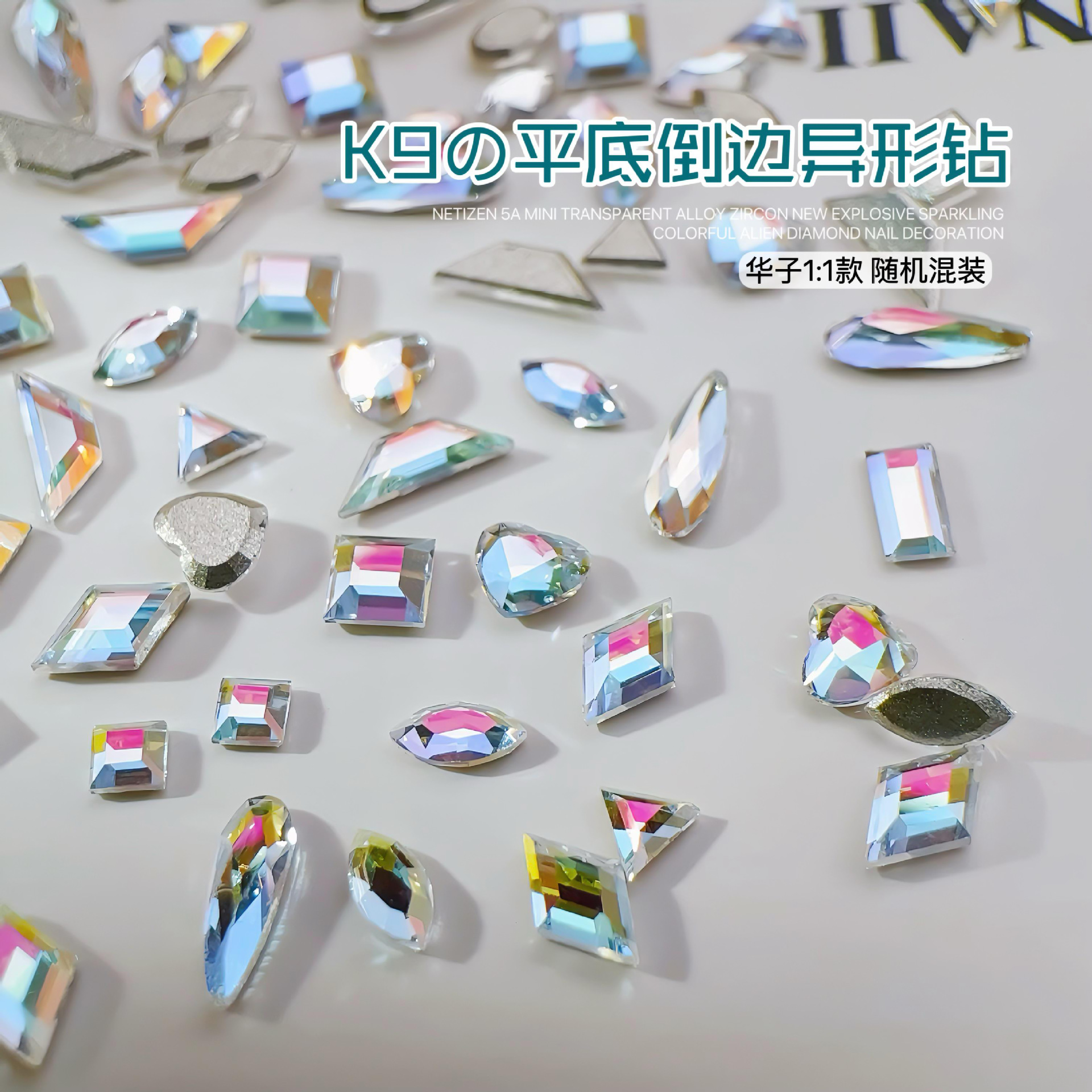 편평한 모양의 다이아몬드 네일 아트 쥬얼리 플래시 K9 샴페인 미니 작은 평면 다이아몬드 혼합을위한 Hua Zi 핑스토어 가기