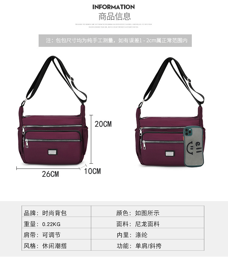 옥스포드 천 여성 가방 2024 새로운 패션 올매치 대용량 작은 사각형 가방 다층 캔버스 어깨 메신저 가방스토어 가기