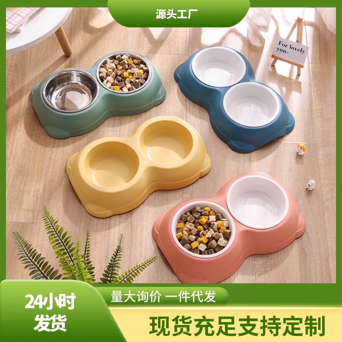 재고 도매 고양이 그릇 더블 그릇을 제거하고 씻기 쉬운 바닥 미끄럼 방지 노크 스테인레스 스틸 애완 동물 그릇 고양이 먹이 분지
