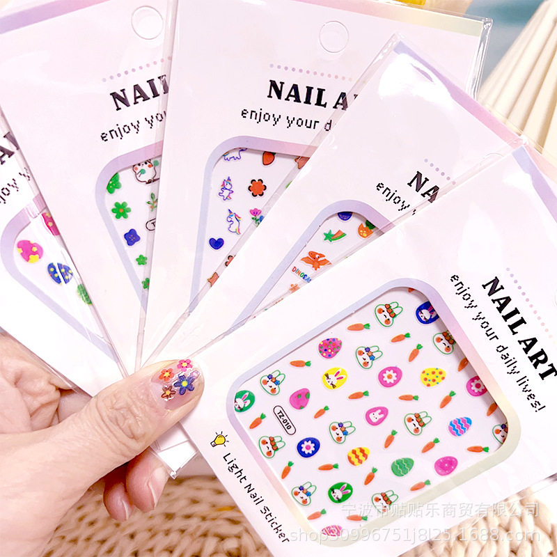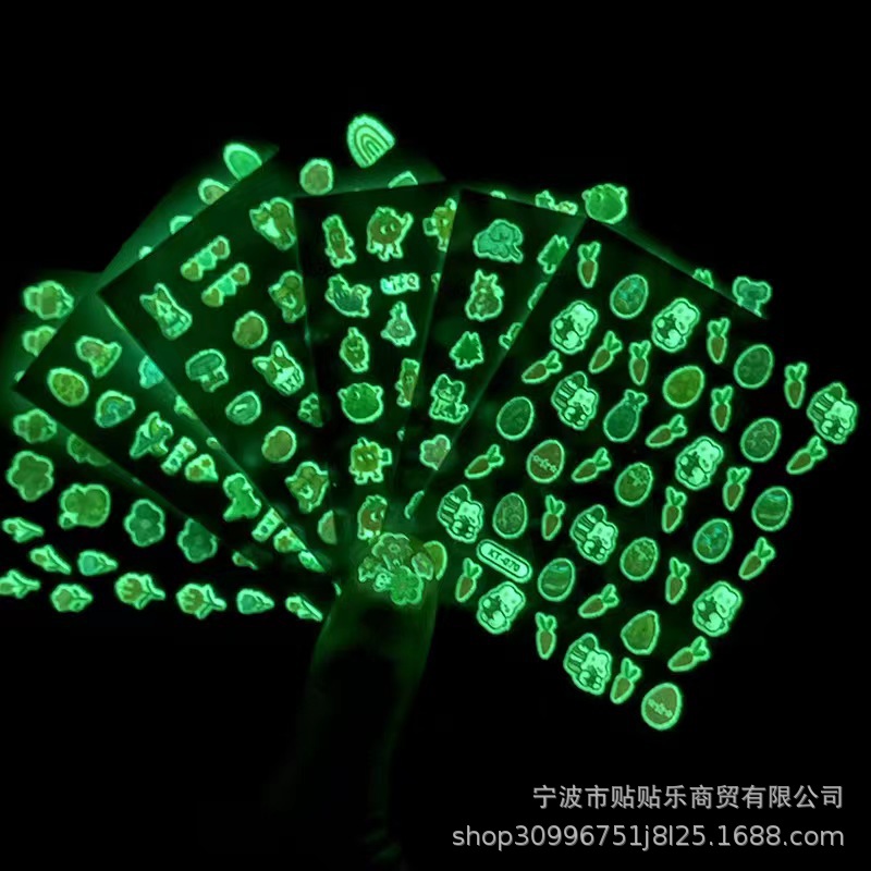 형광 환경 보호 만화와 함께 어린이와 소녀를위한 빛나는 네일 스티커 3 차원 귀여운 패턴 빛나는 네일 스티커