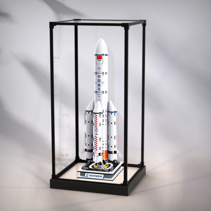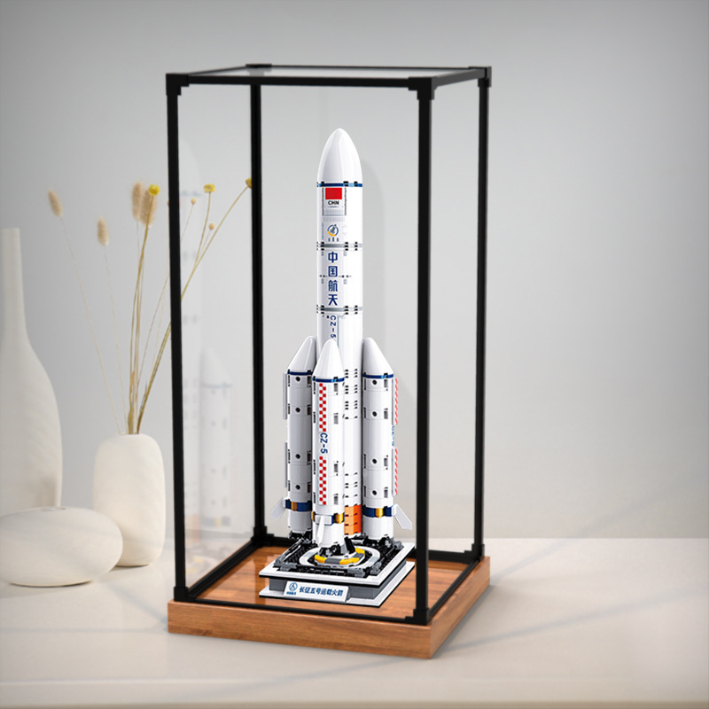 Keeppley 긴 3 월 5 일 발사 차량 나뭇결 프레임 방진 디스플레이 박스 용 아크릴 투명 보관 상자