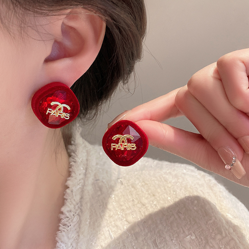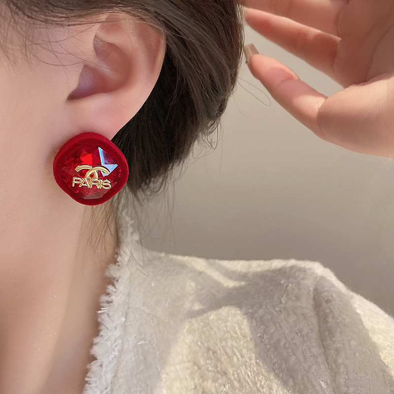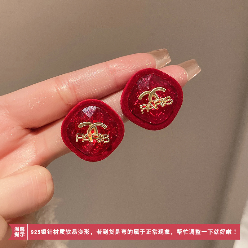 2024 새로운 편지 몰려 드는 귀걸이 가을과 겨울 고급 간단한 귀걸이 여성의 우아한 가벼운 고급 하이 블록 실버 바늘 귀걸이스토어 가기