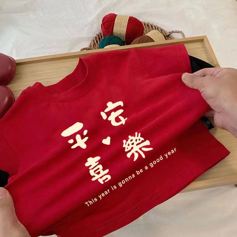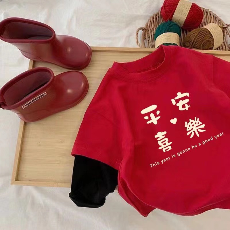 100% 순면 어린이 가짜 투피스 긴팔 티셔츠 중소형 어린이 아기 꼭대기 바닥 봄 · 가을 신년 새해 인사