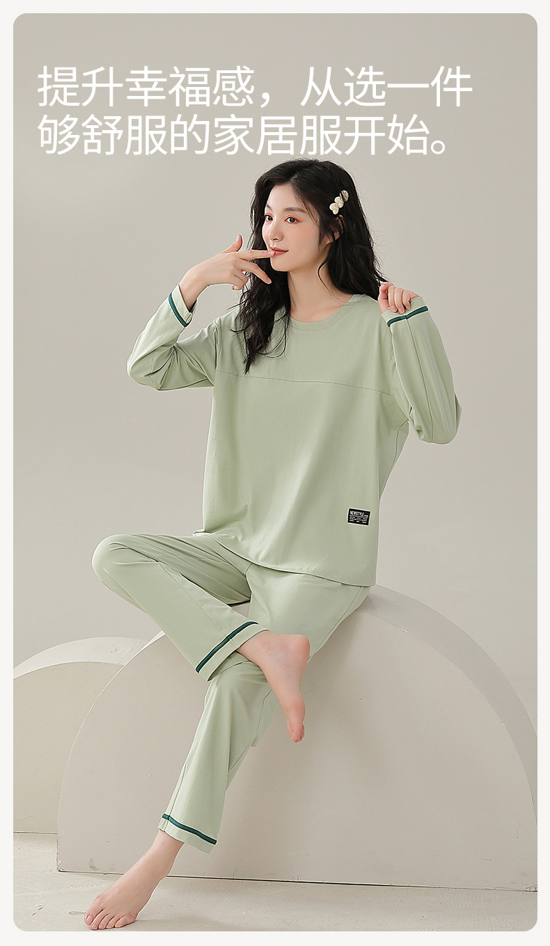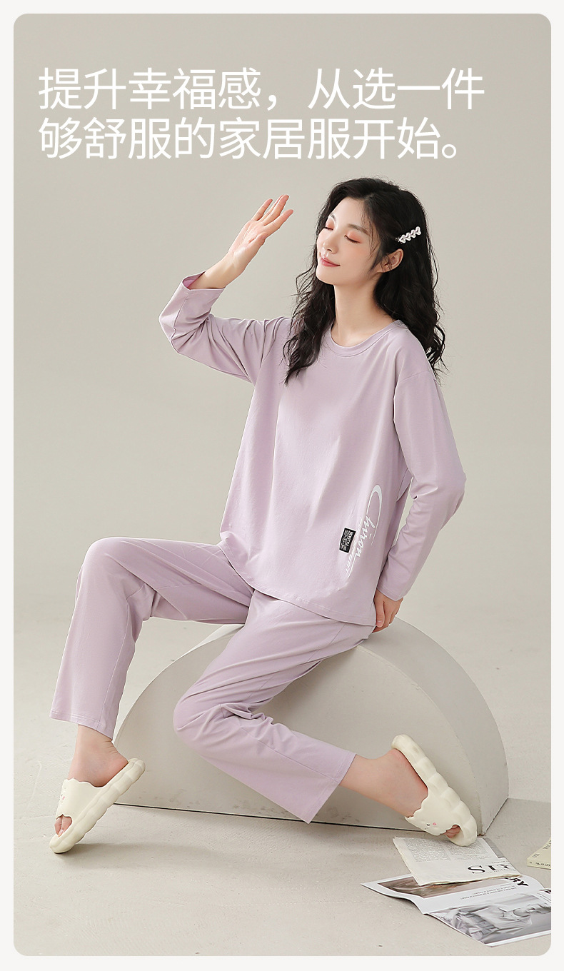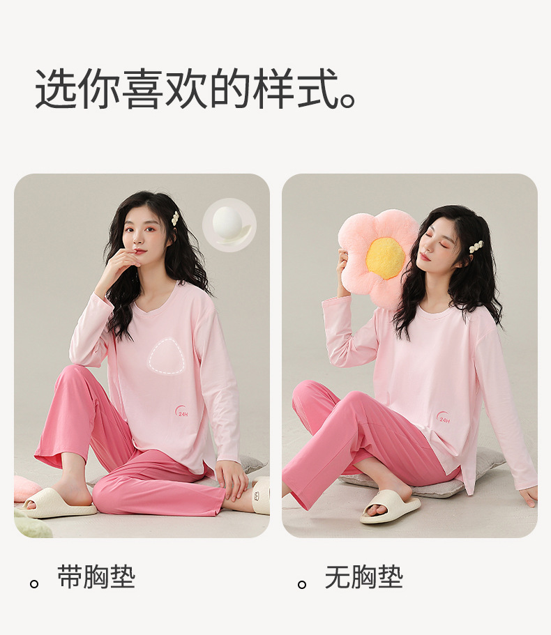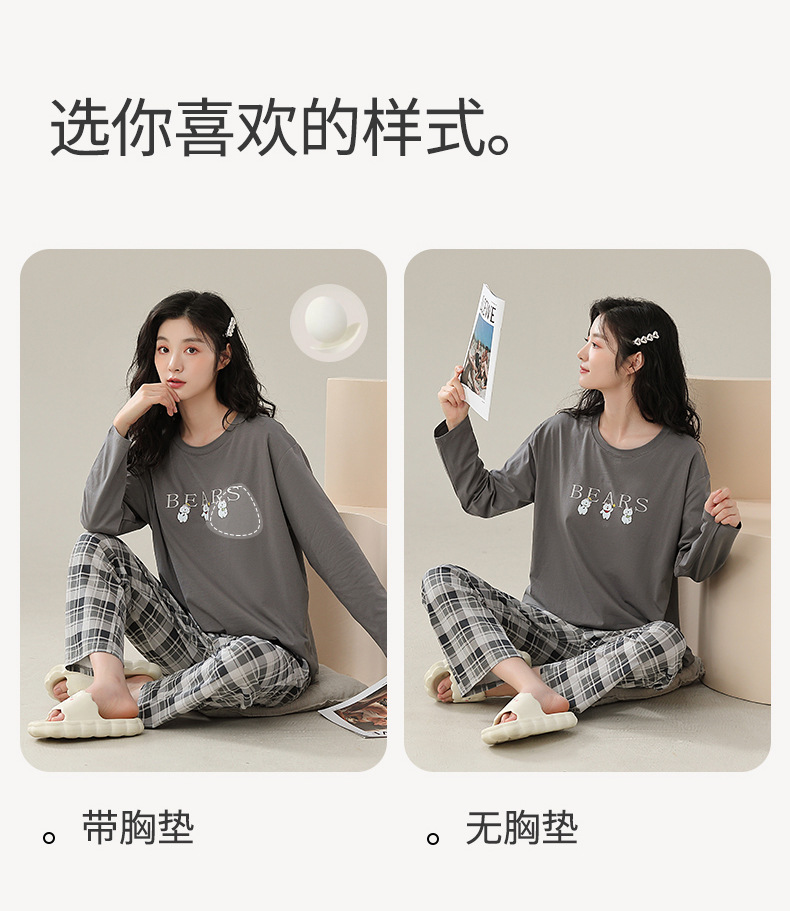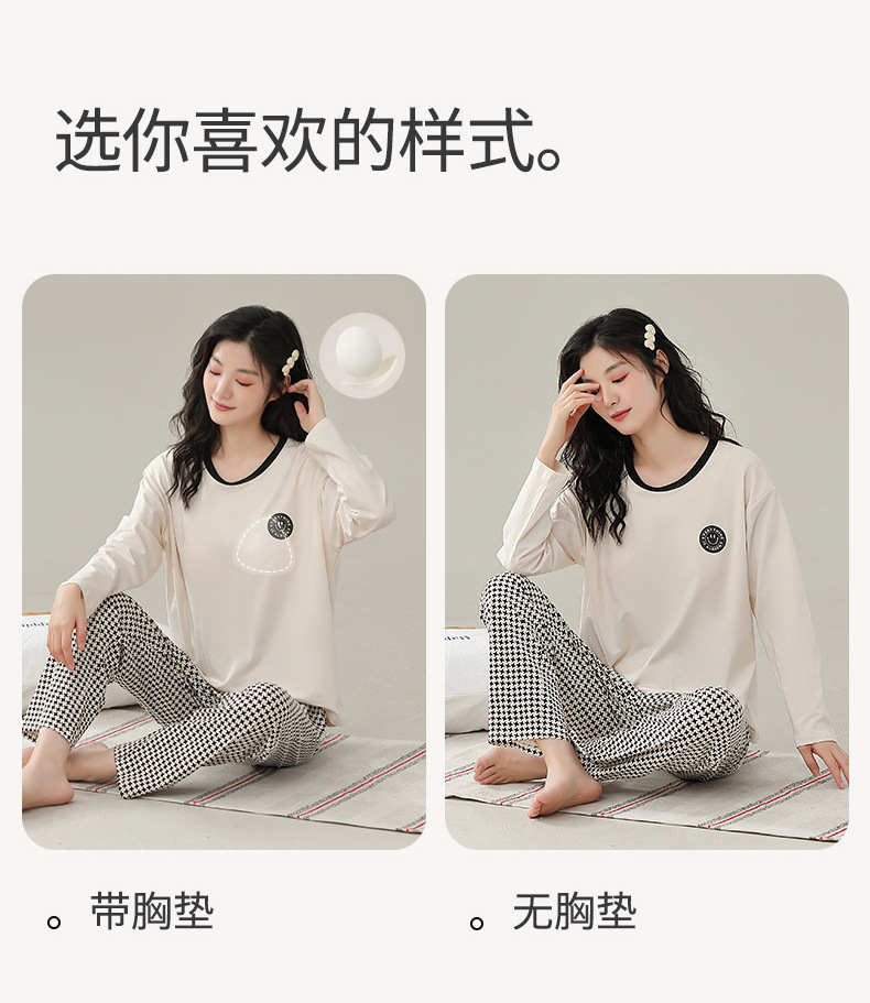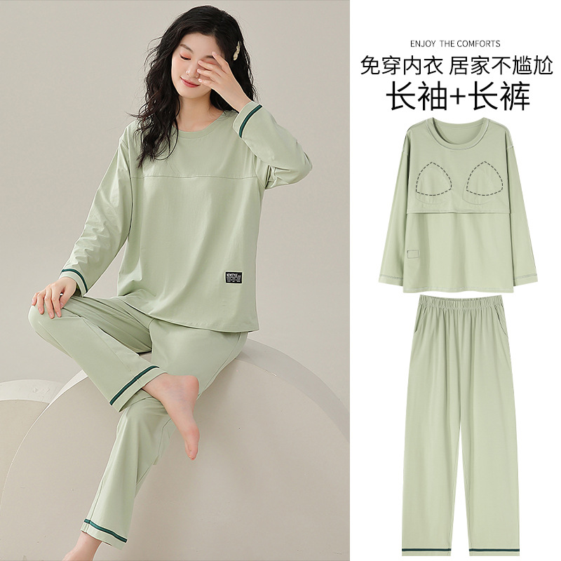 가슴 패드가 달린 여성 잠옷 봄과 가을 면화 긴팔 둥근 목 풀오버 홈웨어 세트스토어 가기