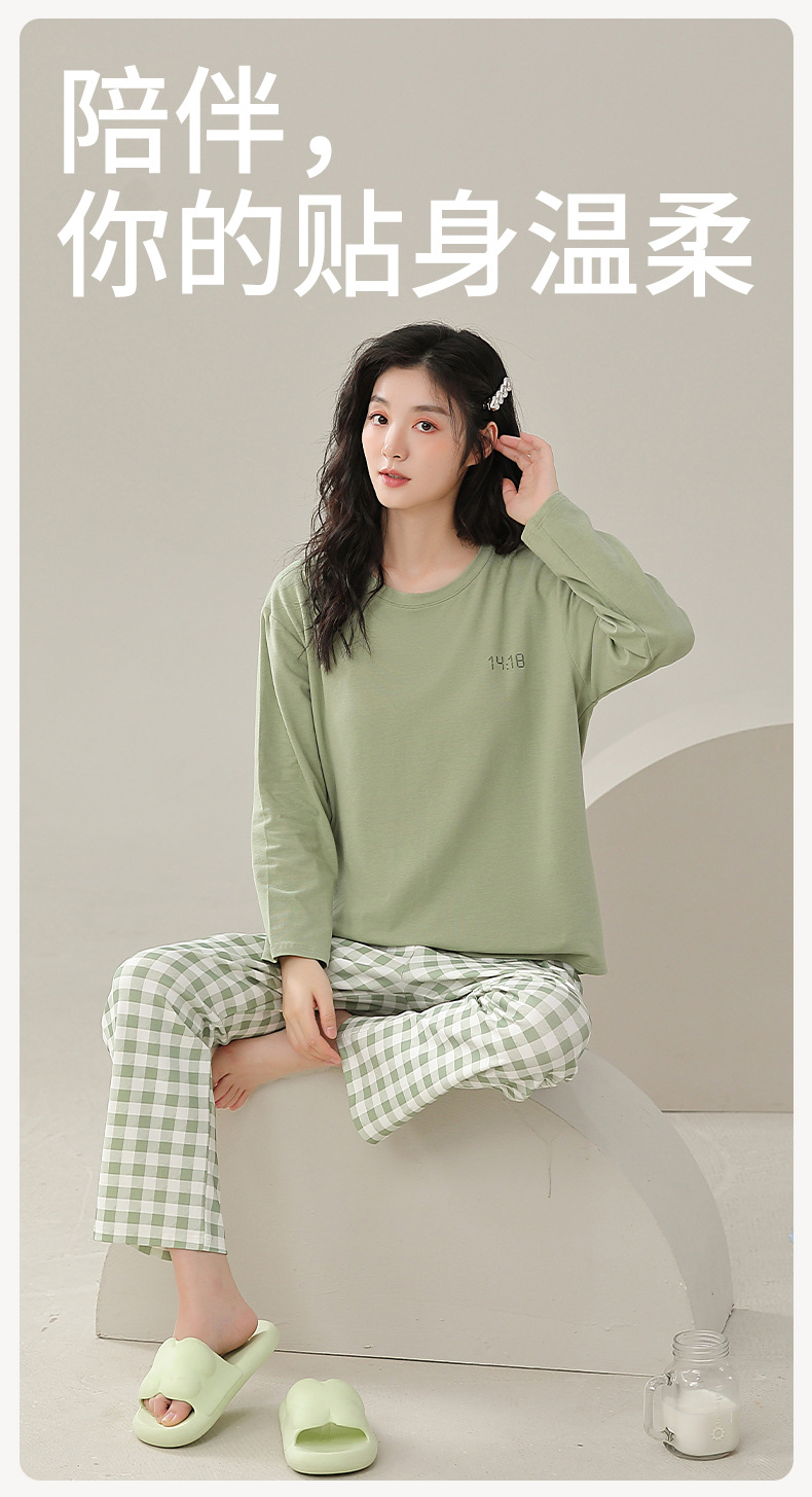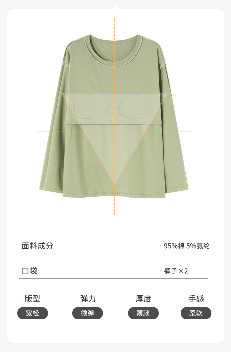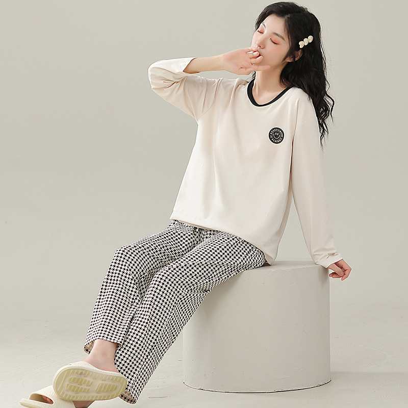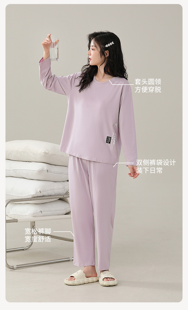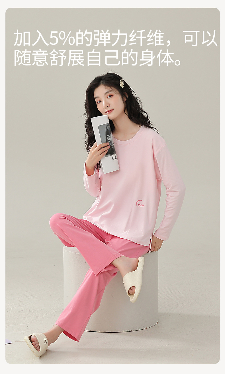 가슴 패드가 달린 여성 잠옷 봄과 가을 면화 긴팔 둥근 목 풀오버 홈웨어 세트스토어 가기