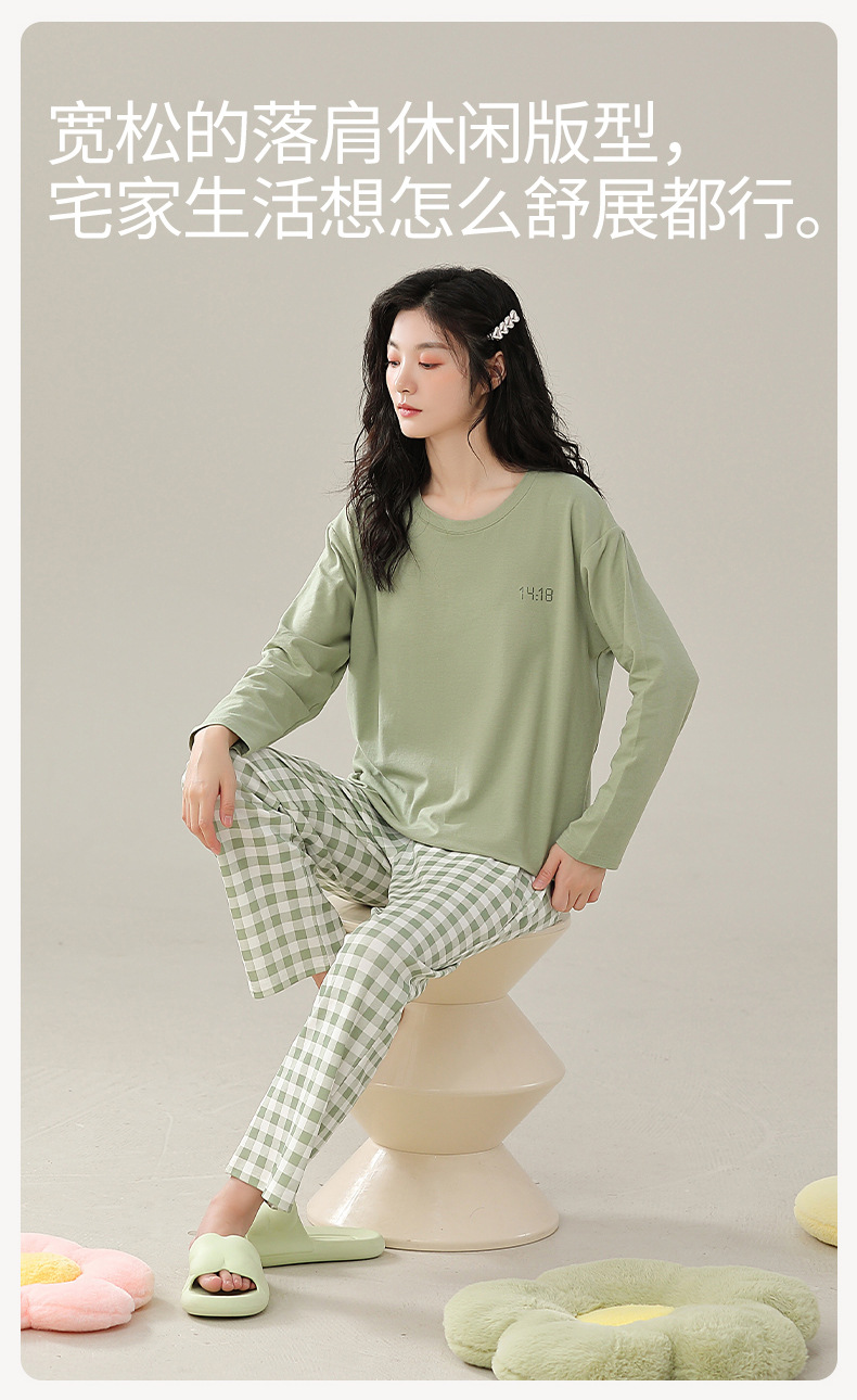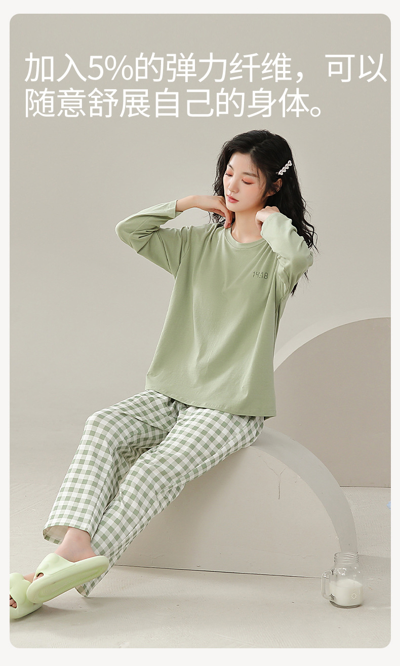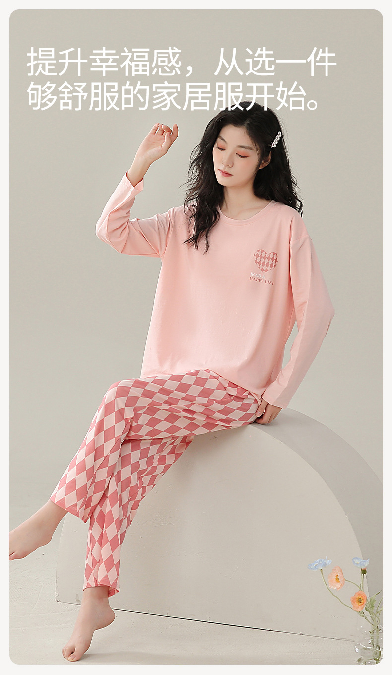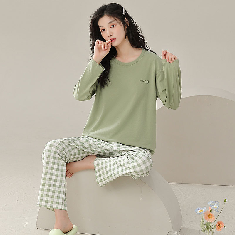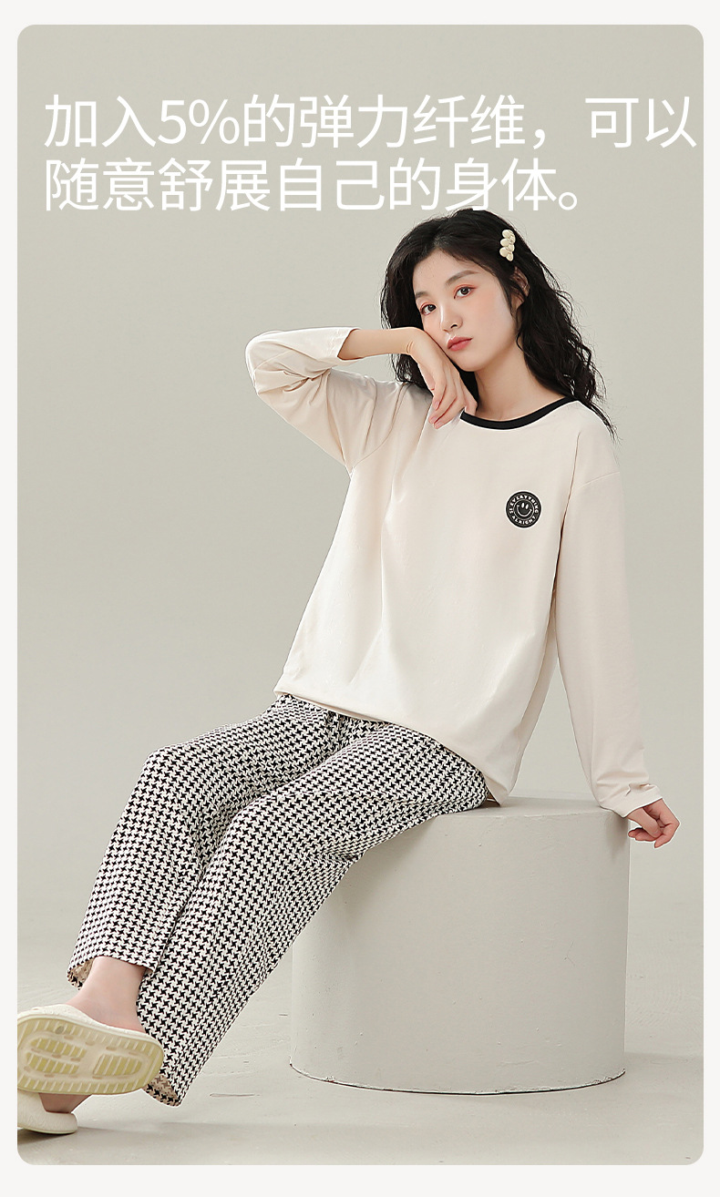 가슴 패드가 달린 여성 잠옷 봄과 가을 면화 긴팔 둥근 목 풀오버 홈웨어 세트스토어 가기