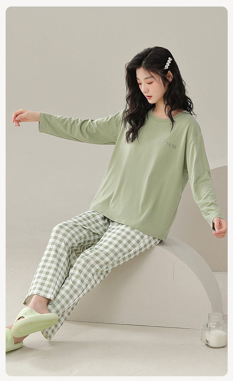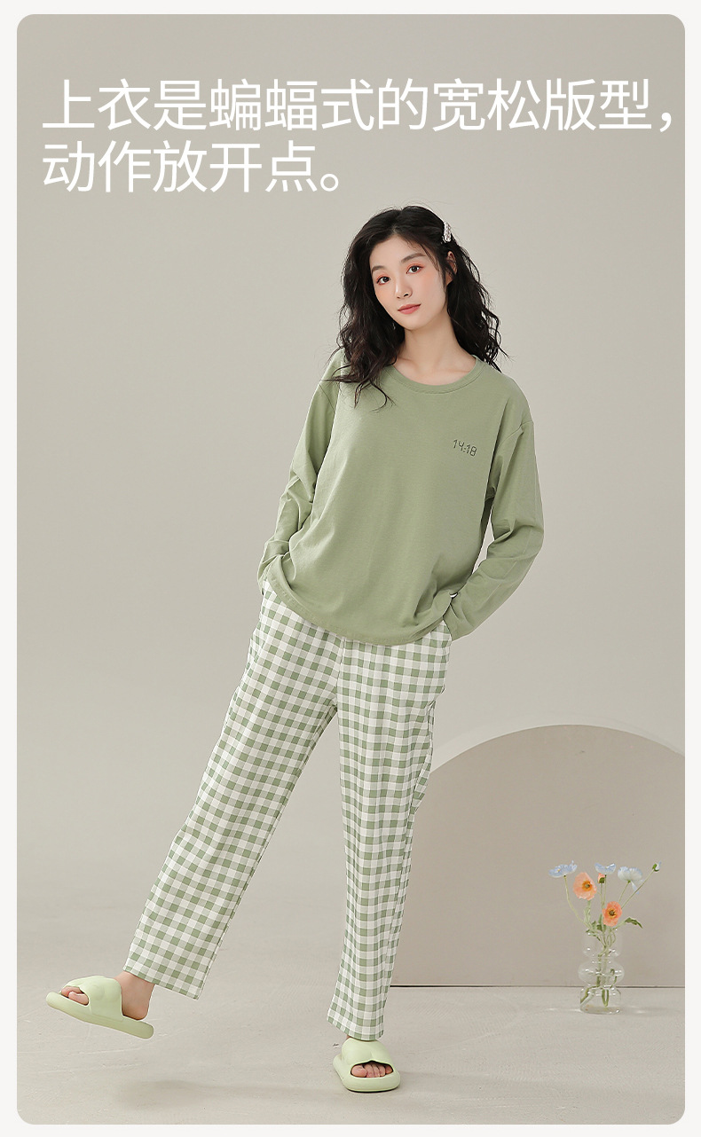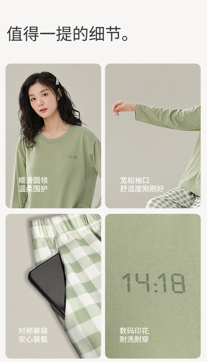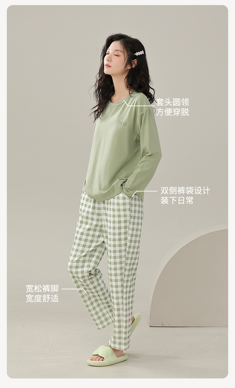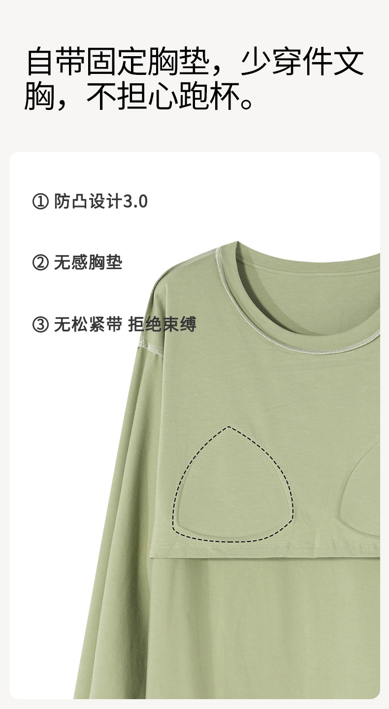가슴 패드가 달린 여성 잠옷 봄과 가을 면화 긴팔 둥근 목 풀오버 홈웨어 세트스토어 가기