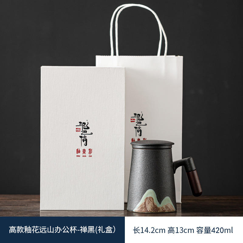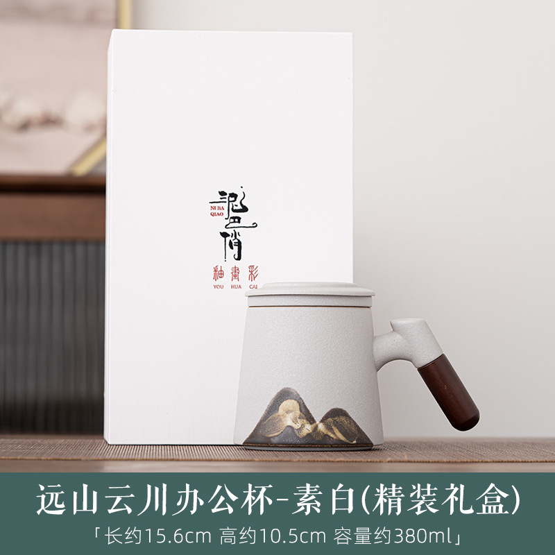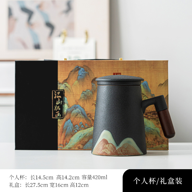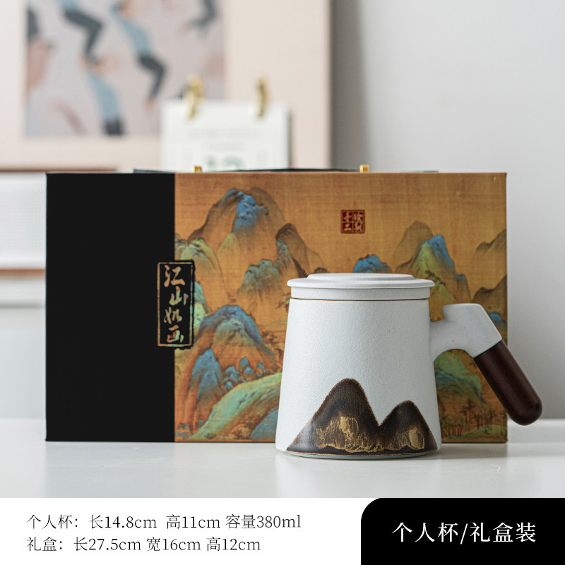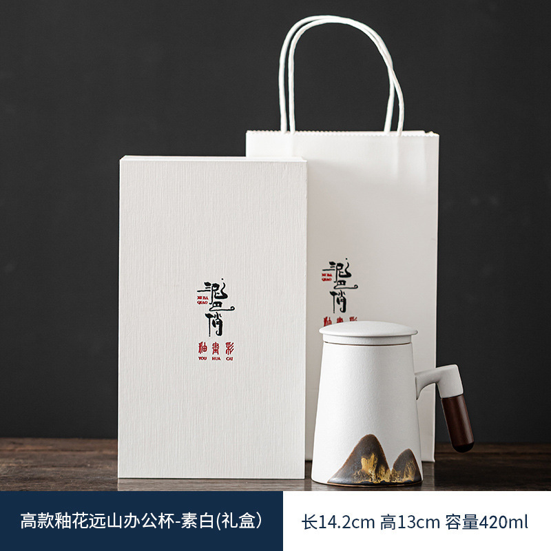 Yuanshan 머그잔 선물 상자 세라믹 대용량 컵 뚜껑 사무실 차 컵 차 분리 로고