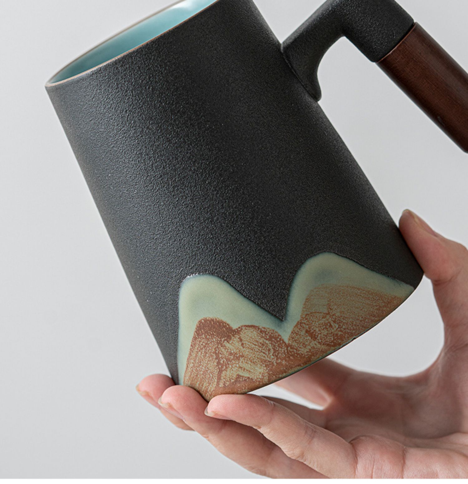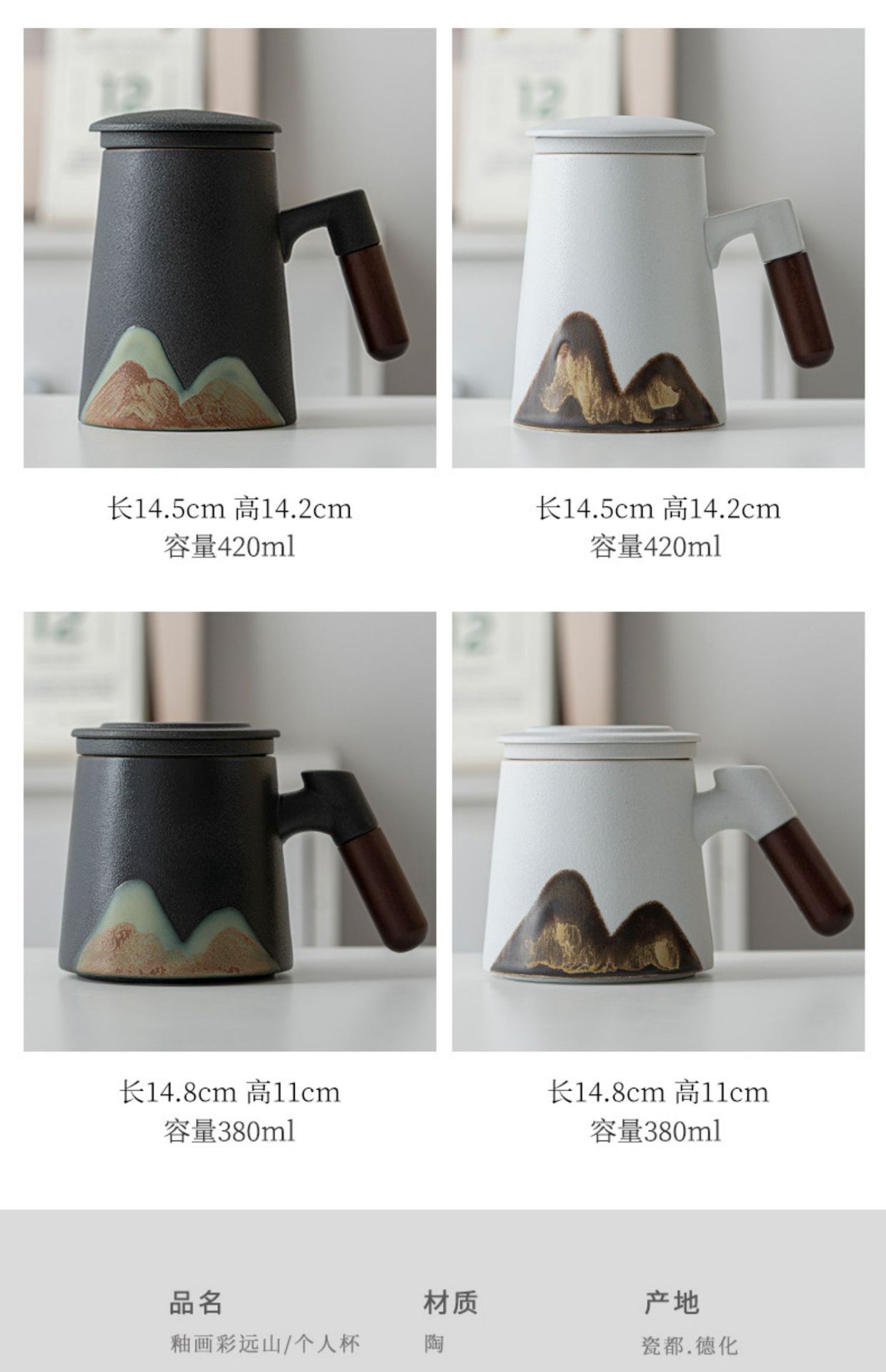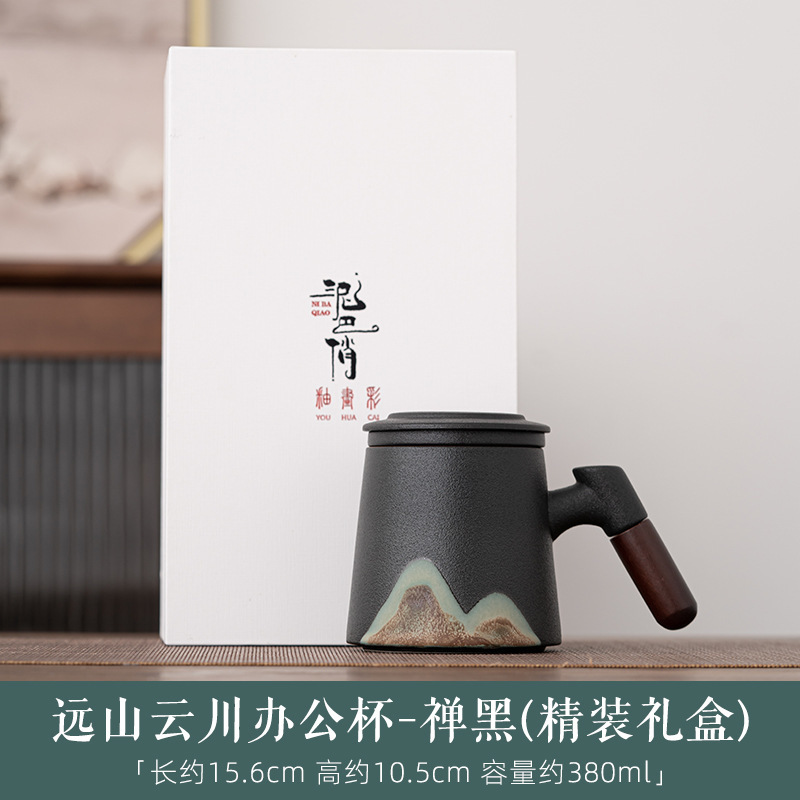 Yuanshan 머그잔 선물 상자 세라믹 대용량 컵 뚜껑 사무실 차 컵 차 분리 로고