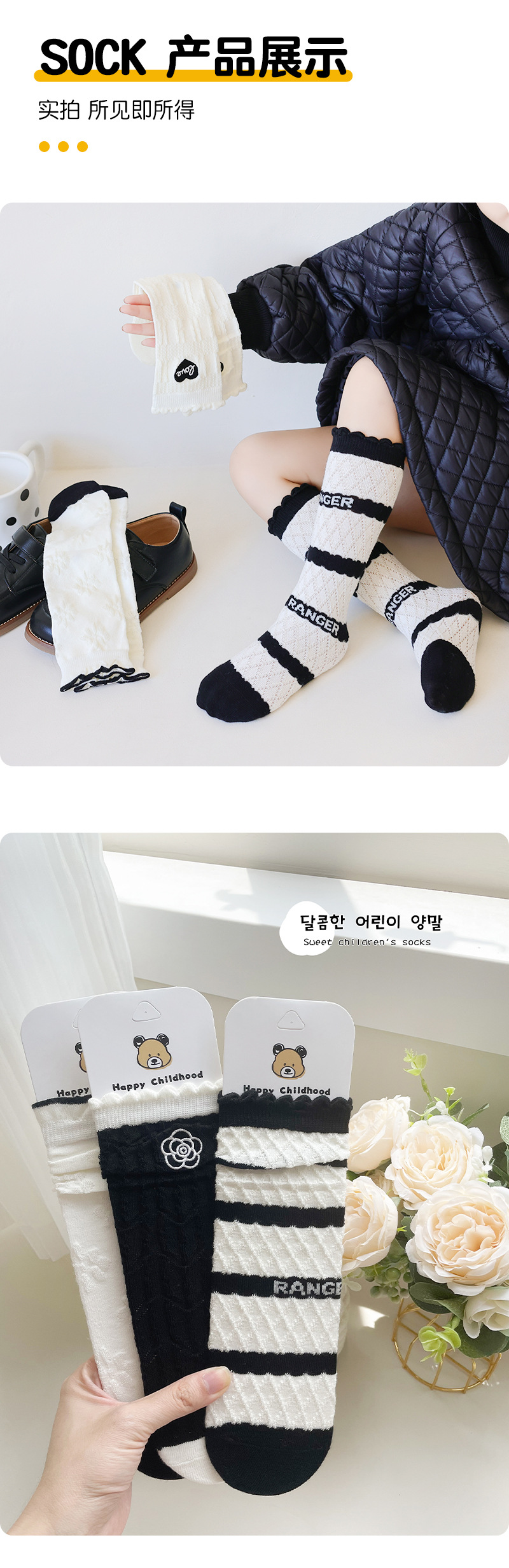 2024 봄 새로운 어린이 양말 만화 자카드 소년 소녀 더미 양말 한국 패션 양말 중간 종아리 길이 양말 도매