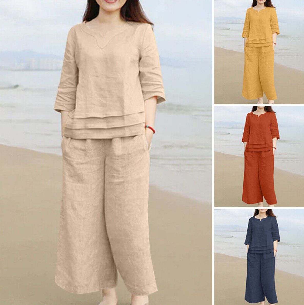 2025년 해외 아마존 및 알리익스프레스 유럽 및 미국 여성복 신상 면마 캐주얼 루즈핏 단색 투피스 세트스토어 가기