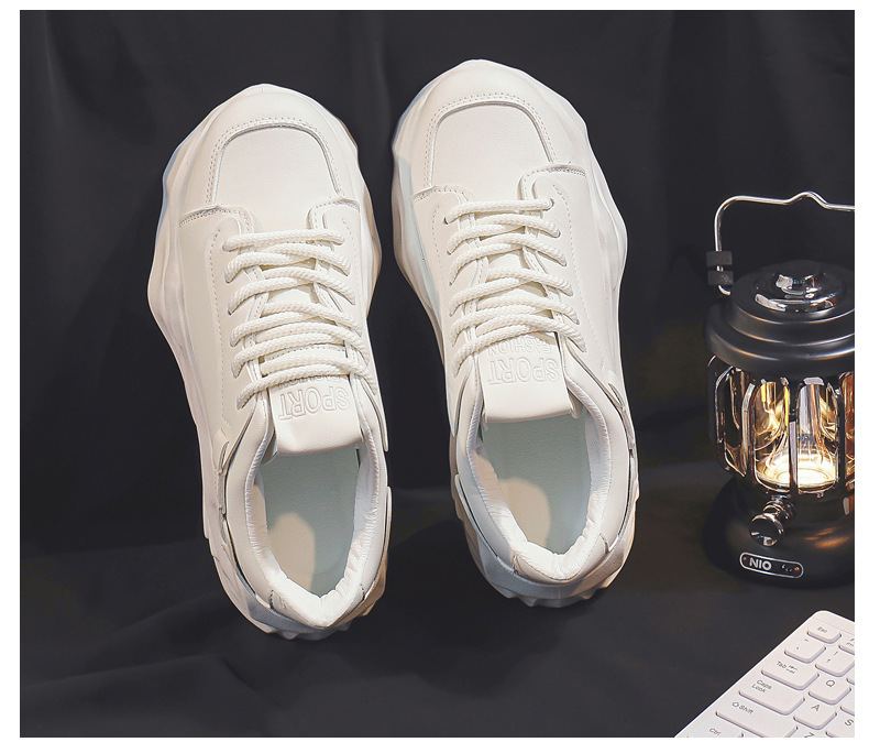 흰색 신발 두꺼운 바닥 운동화 남성 2024 신입 학생 캐주얼 높이 증가 가죽 방수 부드러운 바닥 아빠 신발스토어 가기