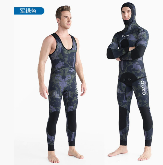 3mm猎鱼服分体游泳冲浪衣男士加厚防寒防晒保暖自由潜夏季潜水服