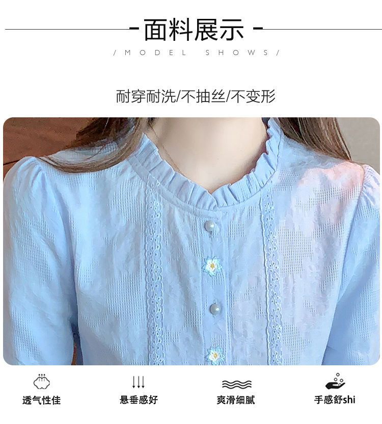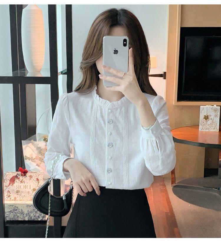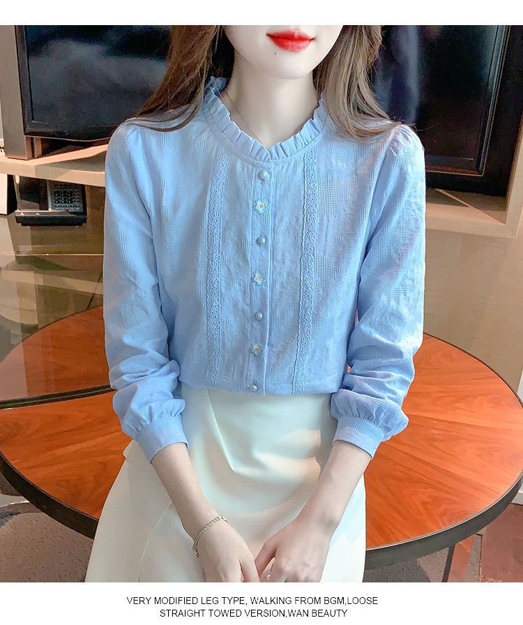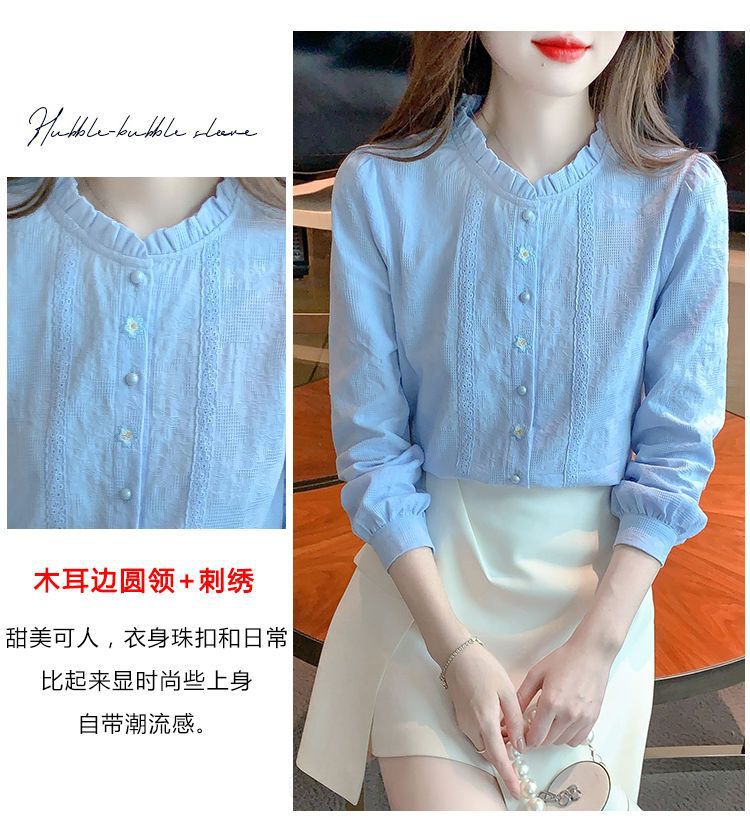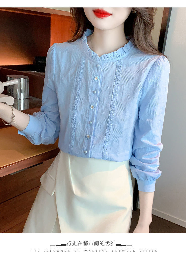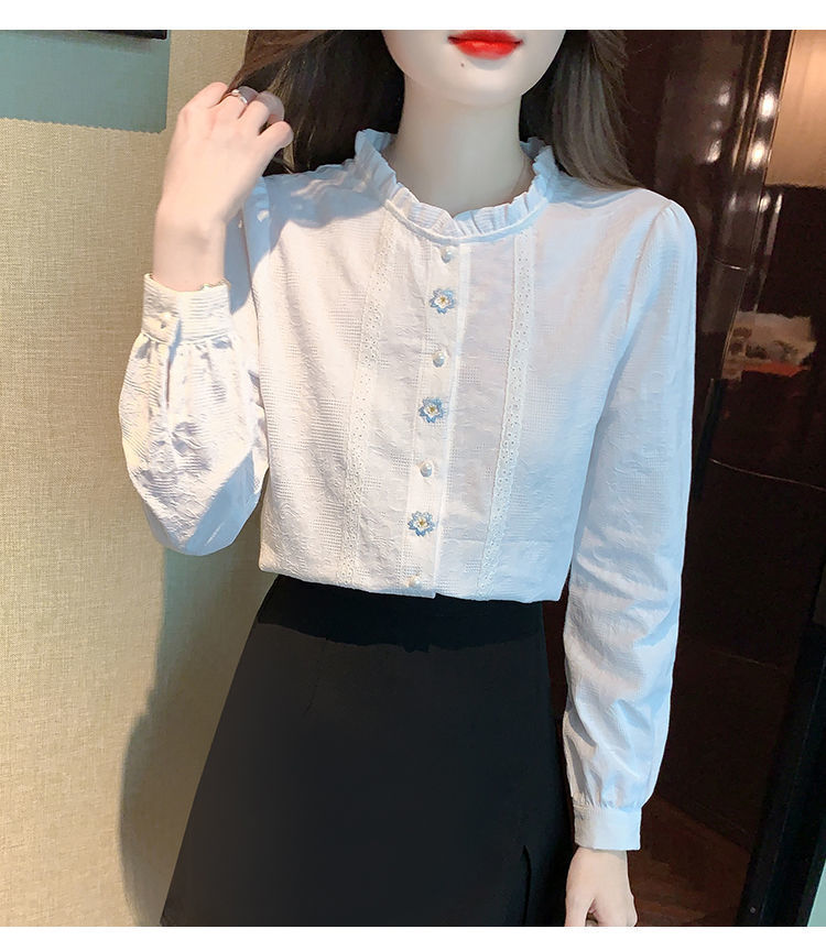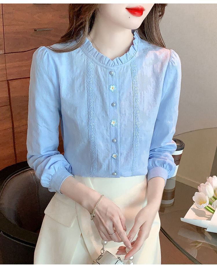 2025년 가을 겨울 신상 자수 자카드 순면 셔츠 여성용 패셔너블한 올 코튼 러플 칼라 플러스 벨벳 두꺼운 상의스토어 가기
