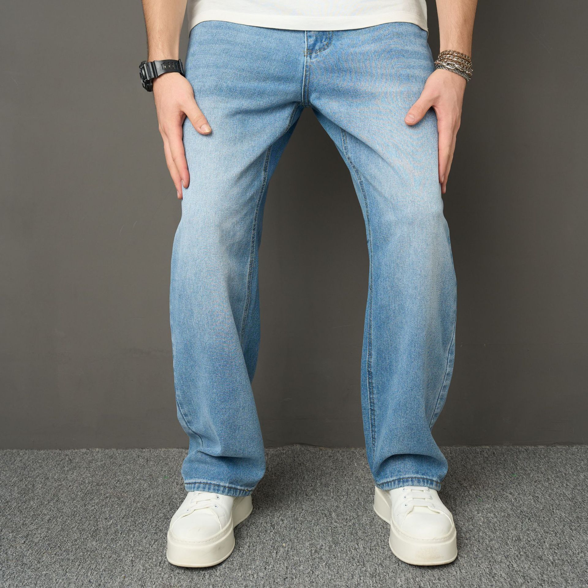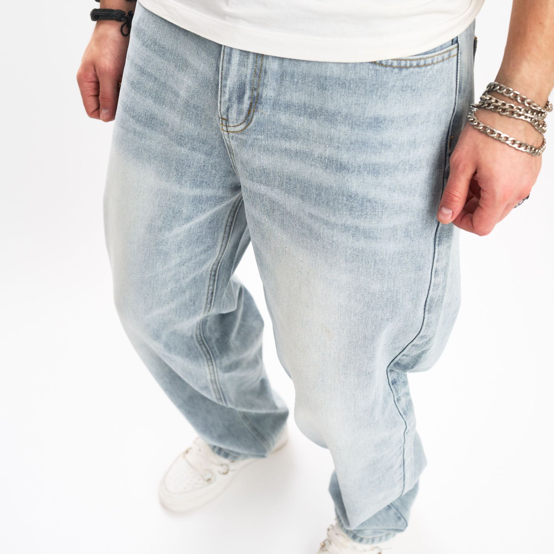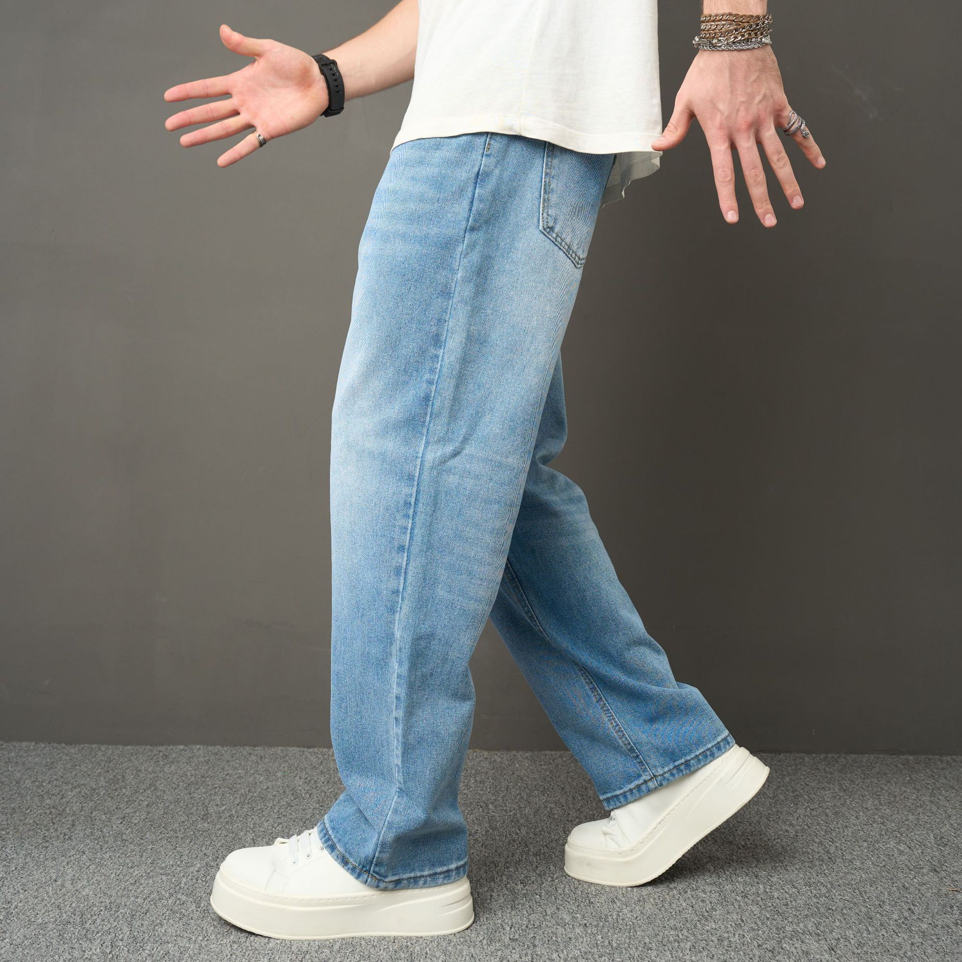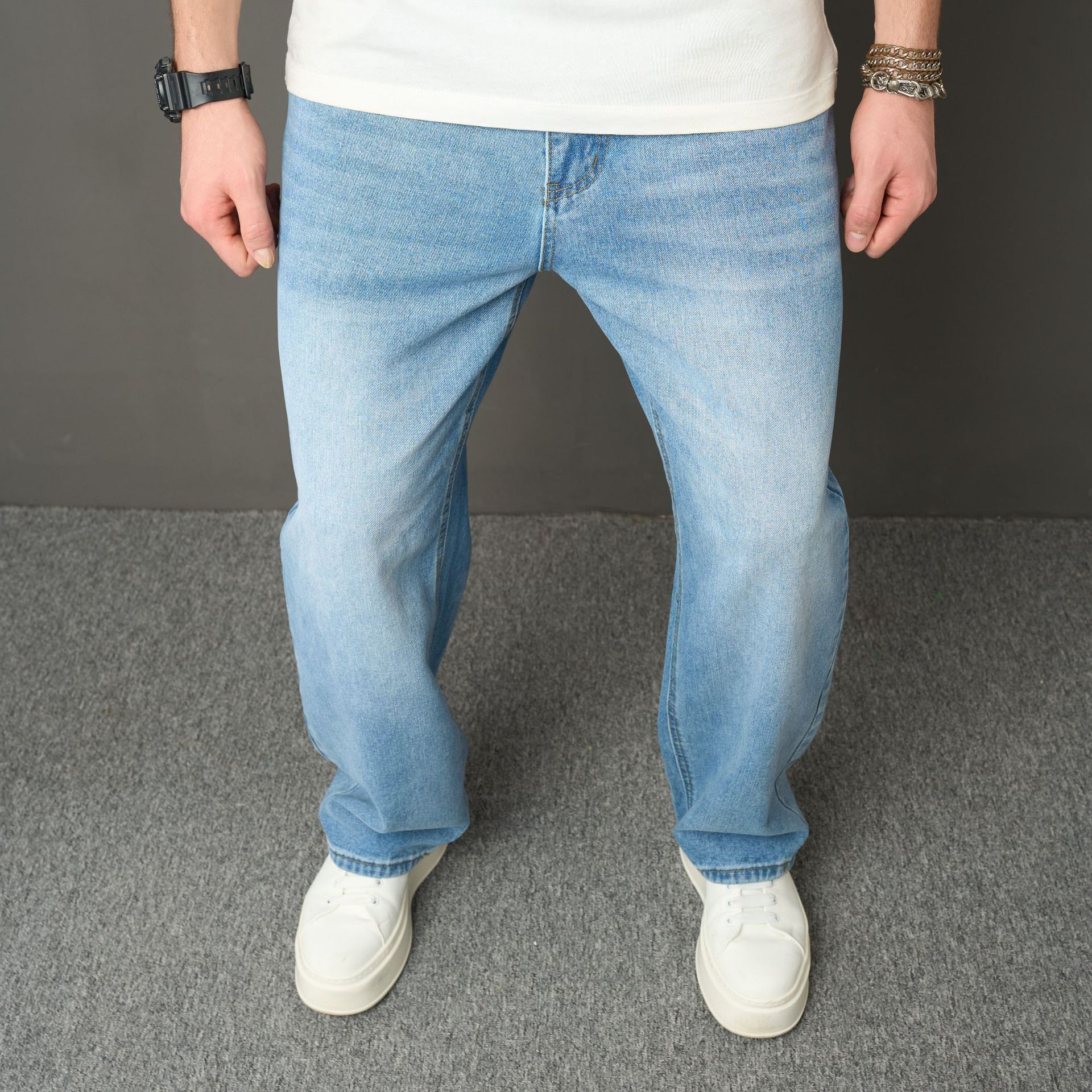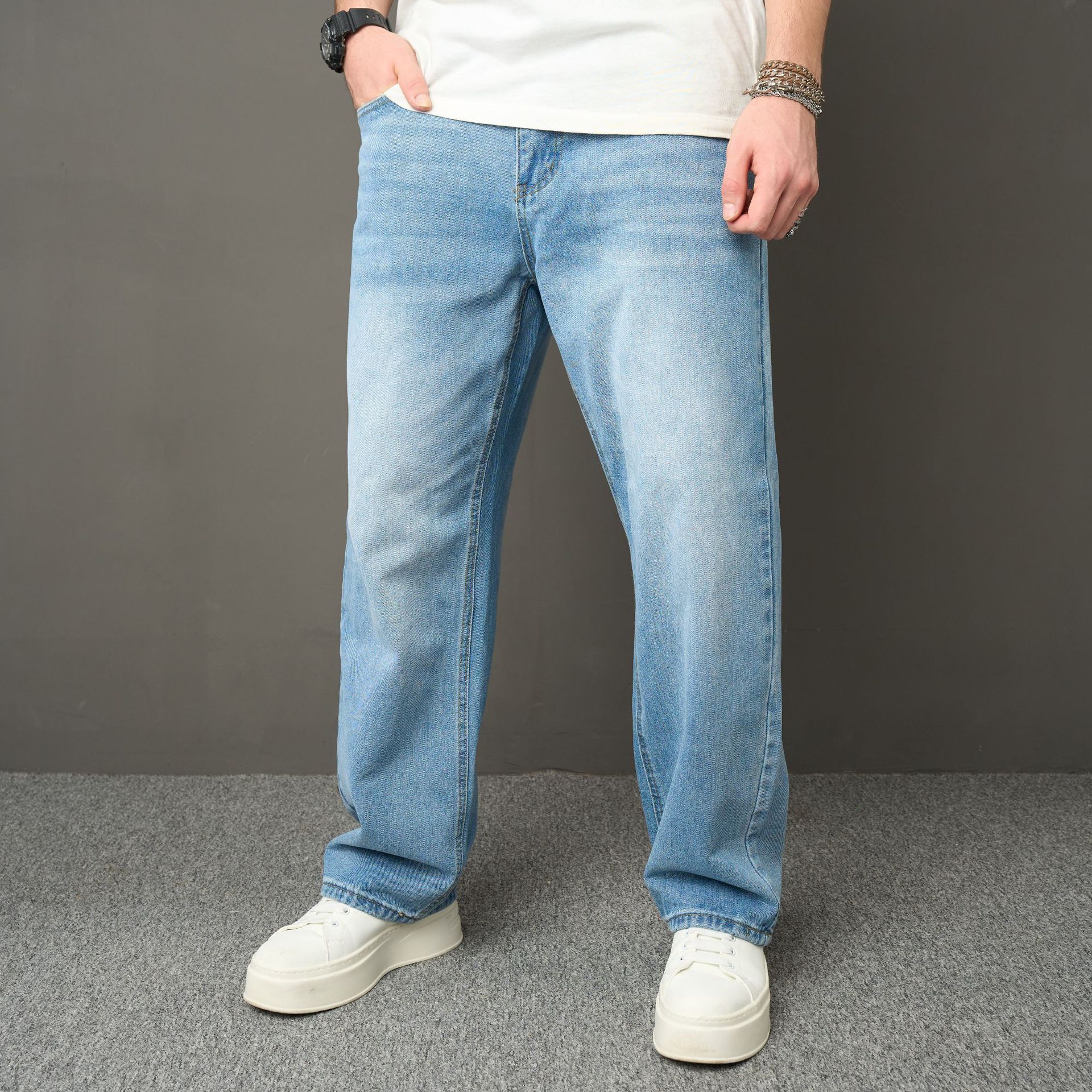 유럽과 미국의 거리 BIKER JEANS 유행 브랜드 Ma Ji 하이 스트리트 남성용 청바지 느슨한 넓은 다리 스트레이트 바지스토어 가기