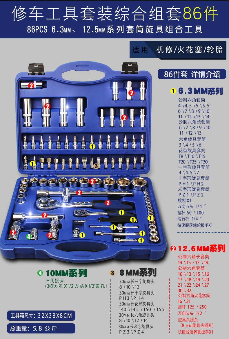 만리장성 세이코 소켓 렌치 세트 슬리브 헤드 케이싱 세트 12.5mm58 조각 6-24mm 405058