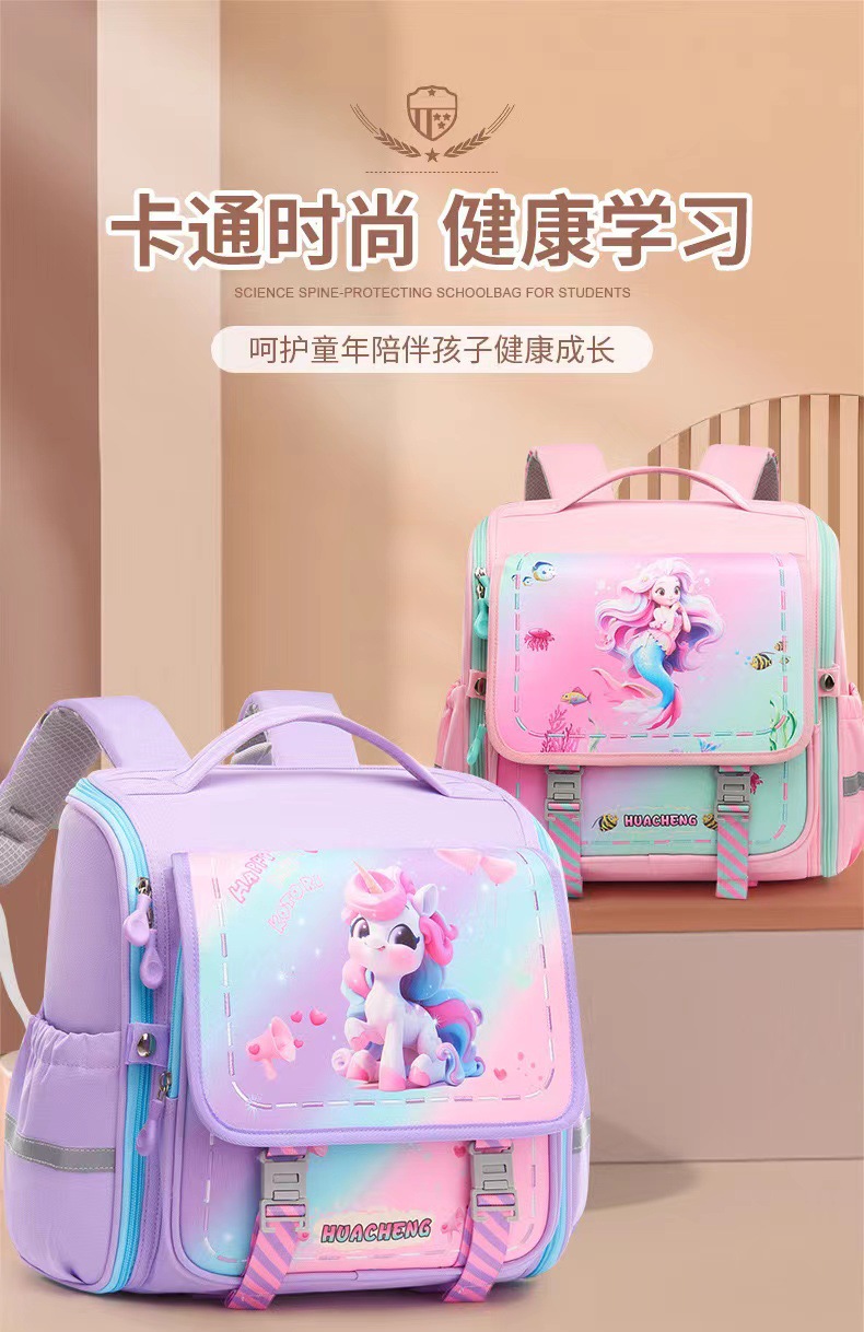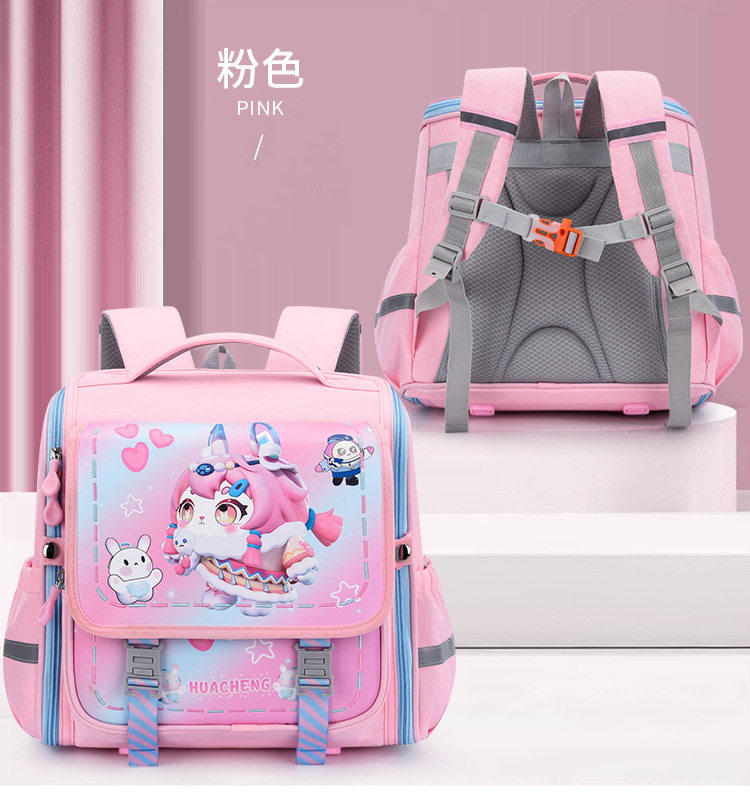 초등학교 학생 새로운 수평 버전 대용량 1-3 학년 방수 부담 감소 척추 보호 만화 책가방 어린이 배낭