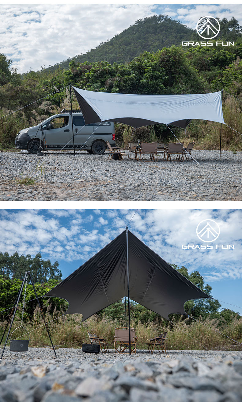 GREENFUN 캐노피 야외 절묘한 캠핑 접시 모양의 캐노피 차양 피크닉 방수 자외선 차단제 그물 레드스토어 가기