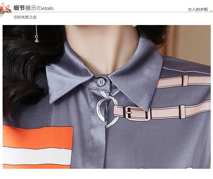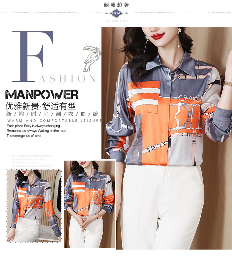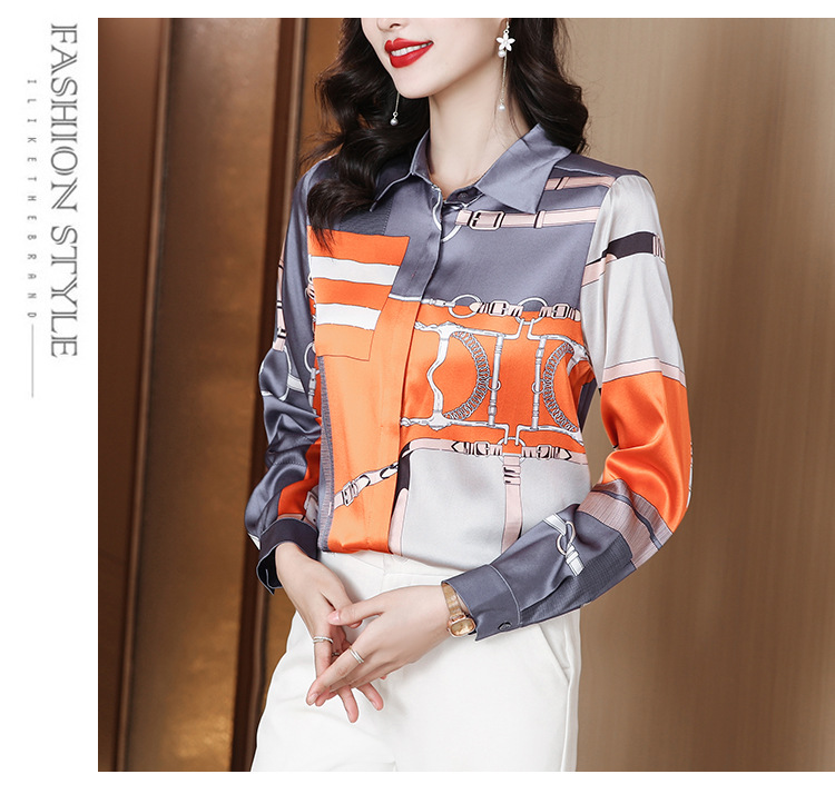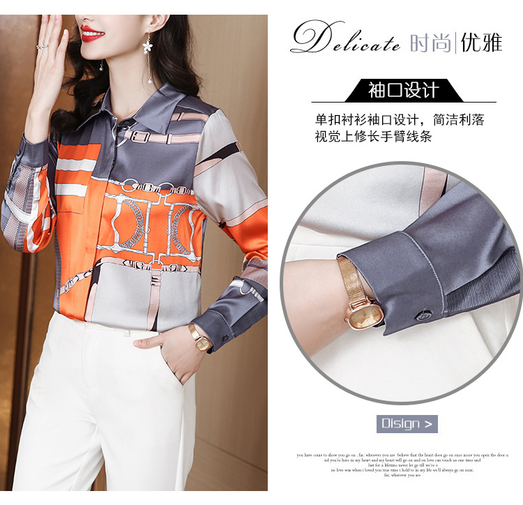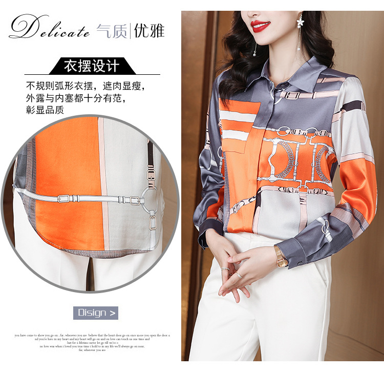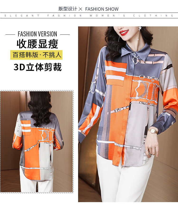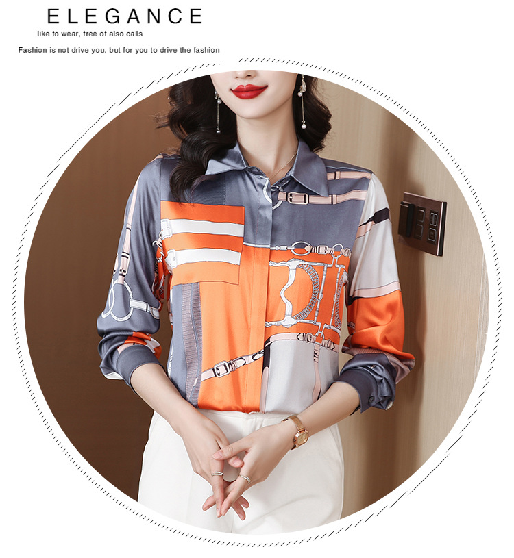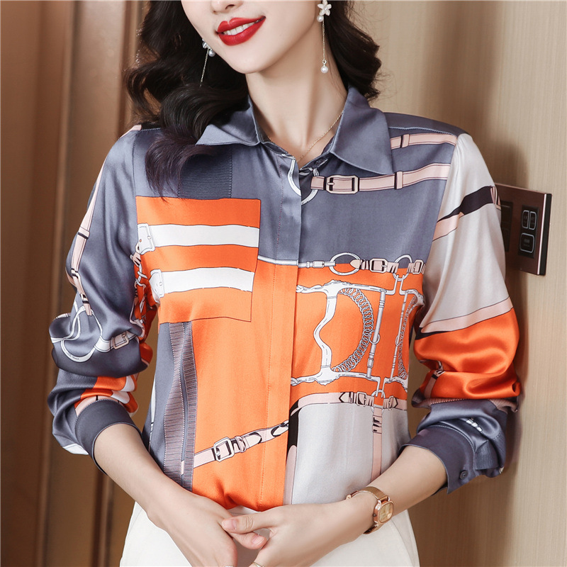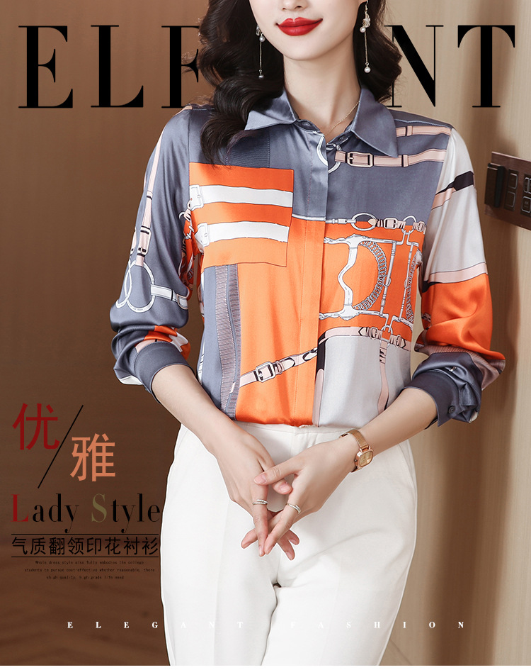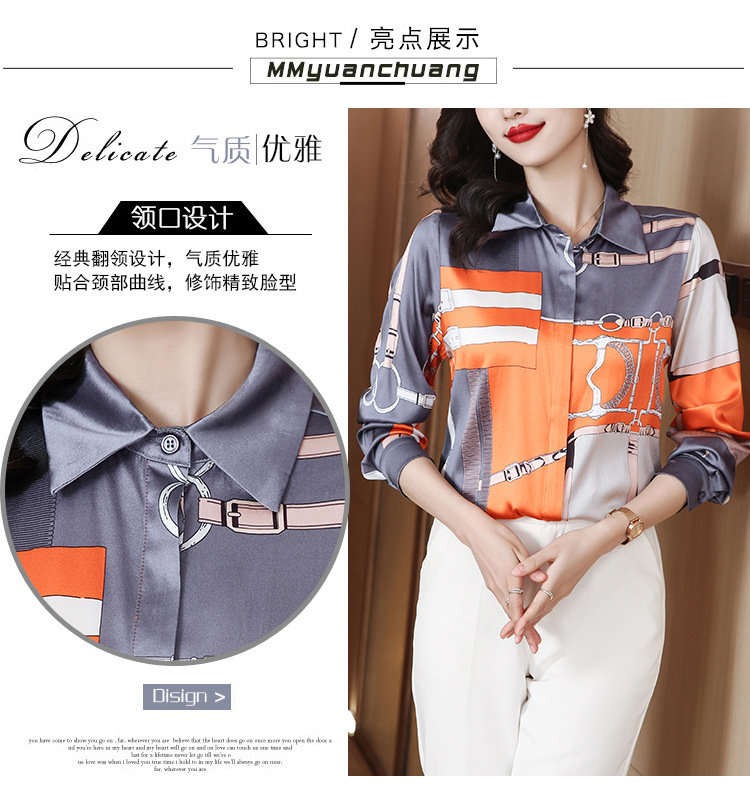 여성용 인공 실크 셔츠 2024 봄 새로운 느슨한 패션 프린트 셔츠 코트 하이 엔드 뽕나무 실크 탑