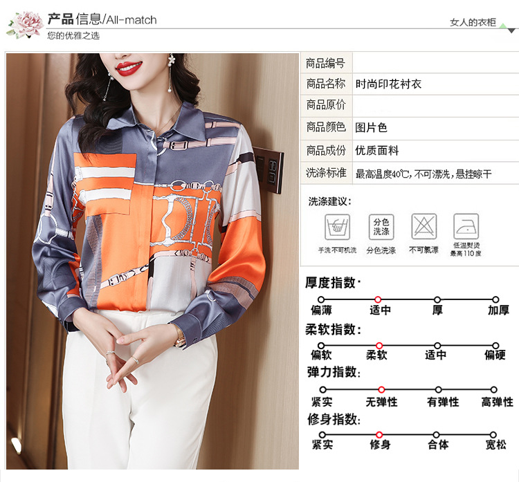 여성용 인공 실크 셔츠 2024 봄 새로운 느슨한 패션 프린트 셔츠 코트 하이 엔드 뽕나무 실크 탑스토어 가기