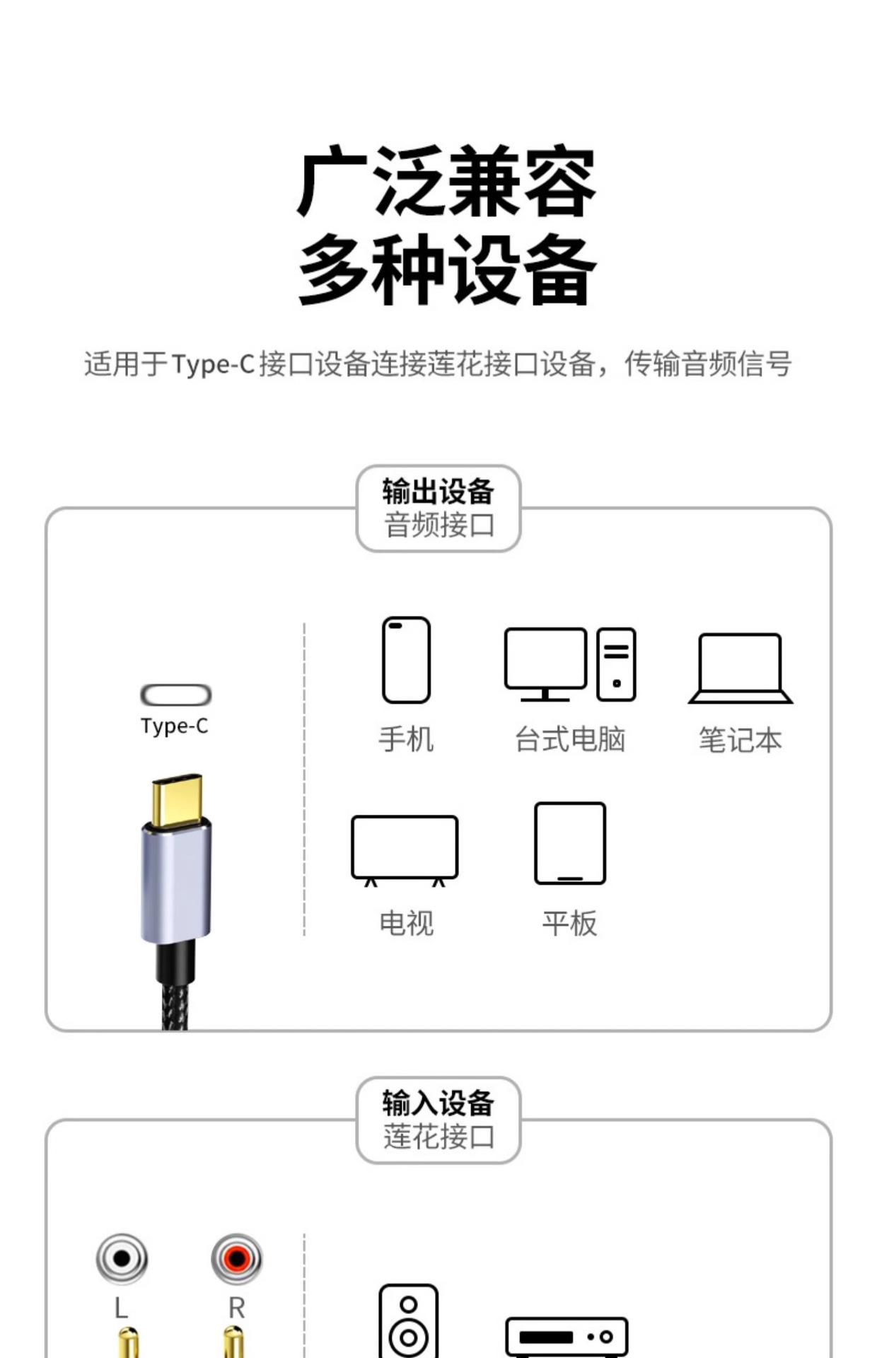 화웨이 애플 휴대 전화 연결 증폭기 스피커 RAC 오디오 어댑터 케이블에 적용 가능한 Typec 더블 연꽃 라인 1 분 2스토어 가기