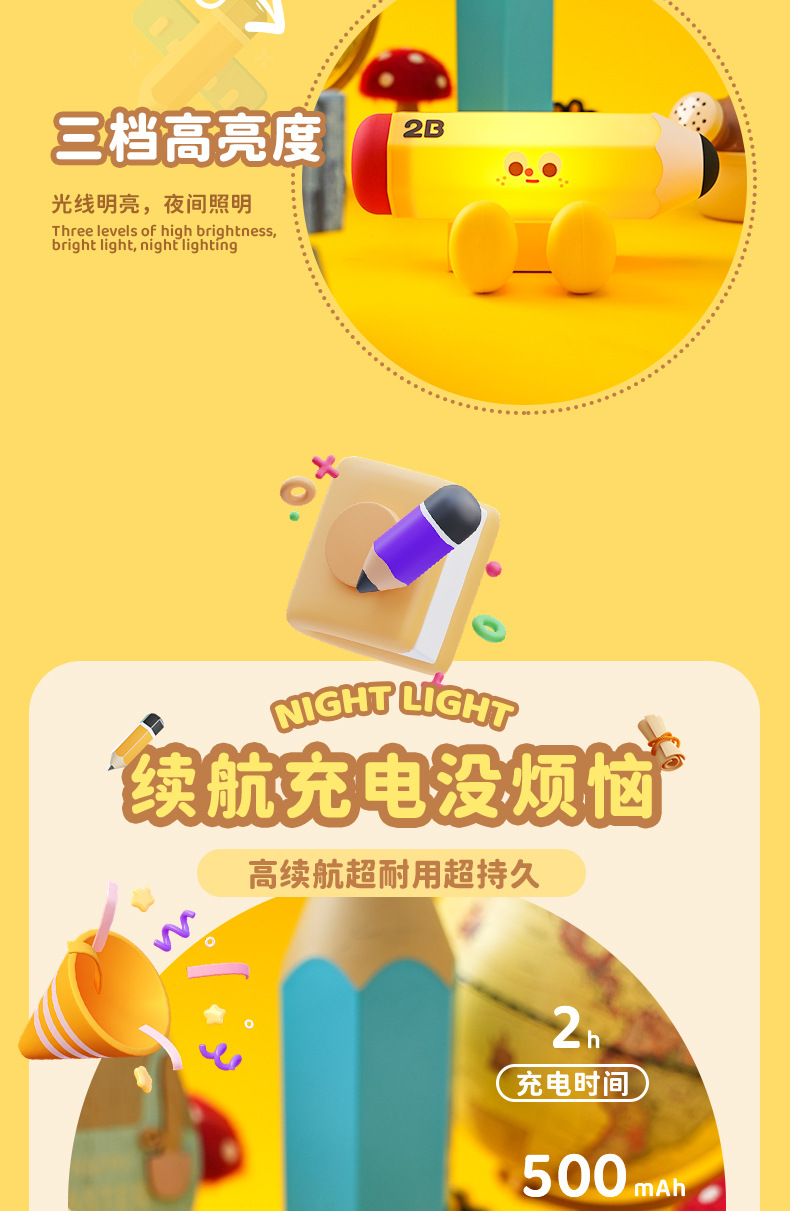 2B 연필 밤 빛 만화 귀여운 장식 휴대 전화 홀더 충전 침실 생일 선물 창조적 인 선물 밤 빛