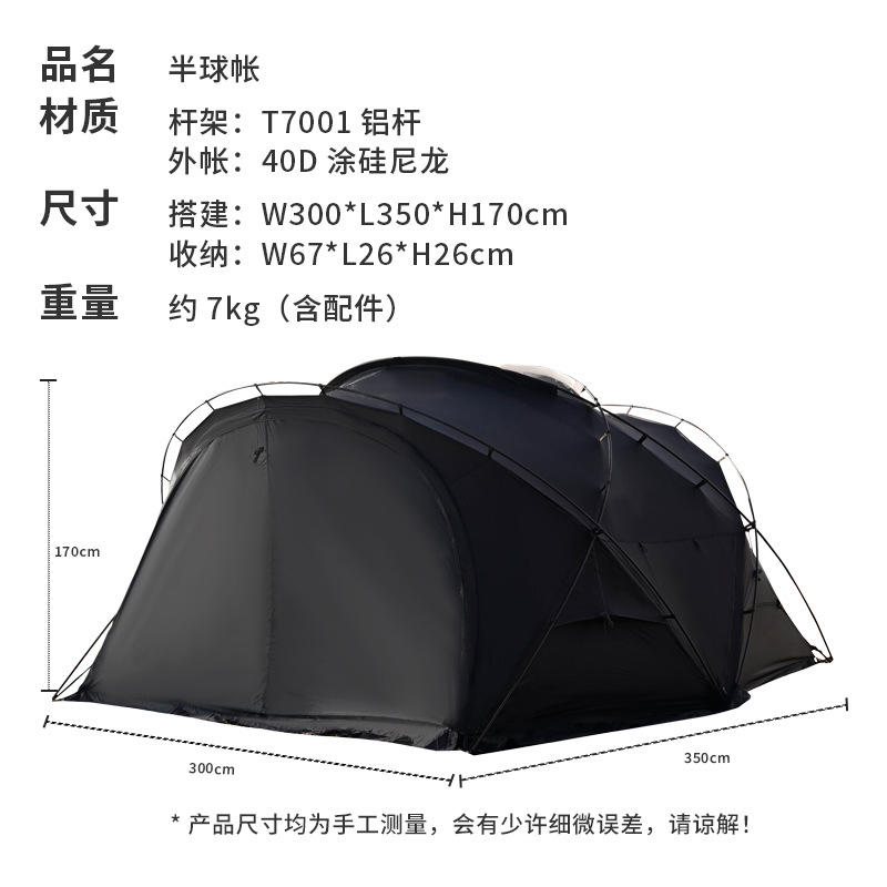 • 3.5x3x1.7 소형 검정색 반구형 텐트(굴뚝 개구부 포함)