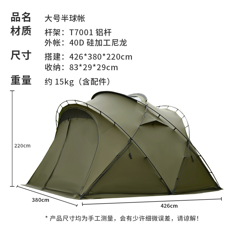 • 4.26x3.8x2.2 대형 반구형 메인 텐트 짙은 녹색(굴뚝 개구부 포함)