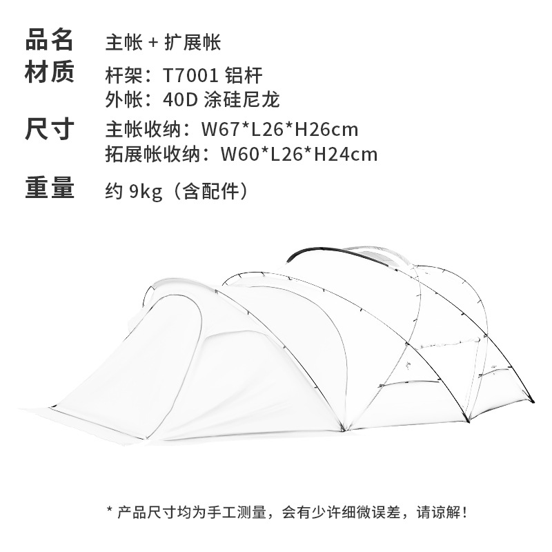 • 4.26x3.8x2.2 대형 반구형 메인 텐트 검정색(굴뚝 개구부 포함)