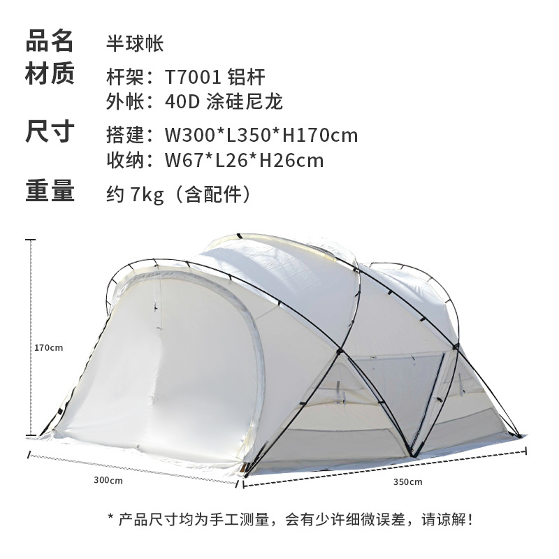 반구형 텐트 야외 캠핑 경량 돔 보호소 실리콘 코팅 방풍 및 방비 캠핑 장비 차양