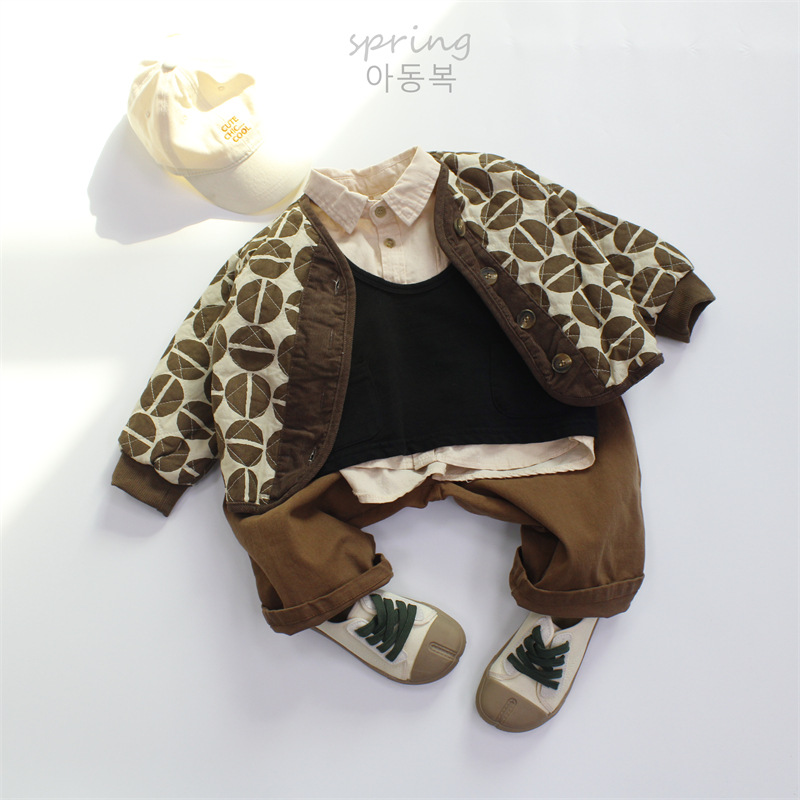 2025년 가을 아동용 얇은 면옷 남아용 면코트 한국 스타일 레트로풍 여아용 자켓 가을 다용도