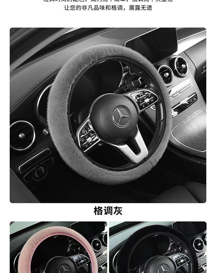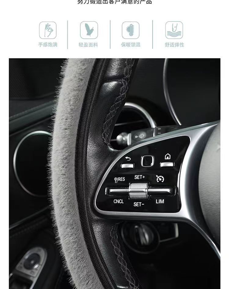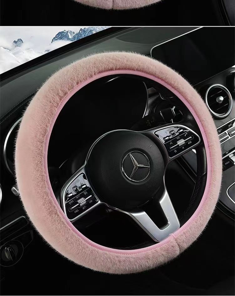 겨울용 짧은 털 자동차 핸들 커버, 따뜻하고 미끄럼 방지, 인조 밍크털 장식, 모든 차종에 적합한 자동차 핸들 커버스토어 가기