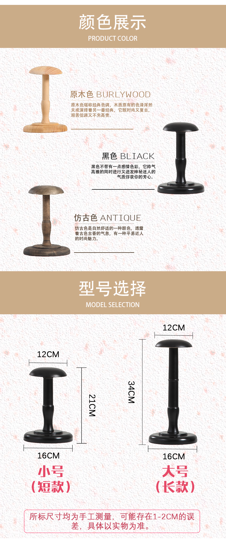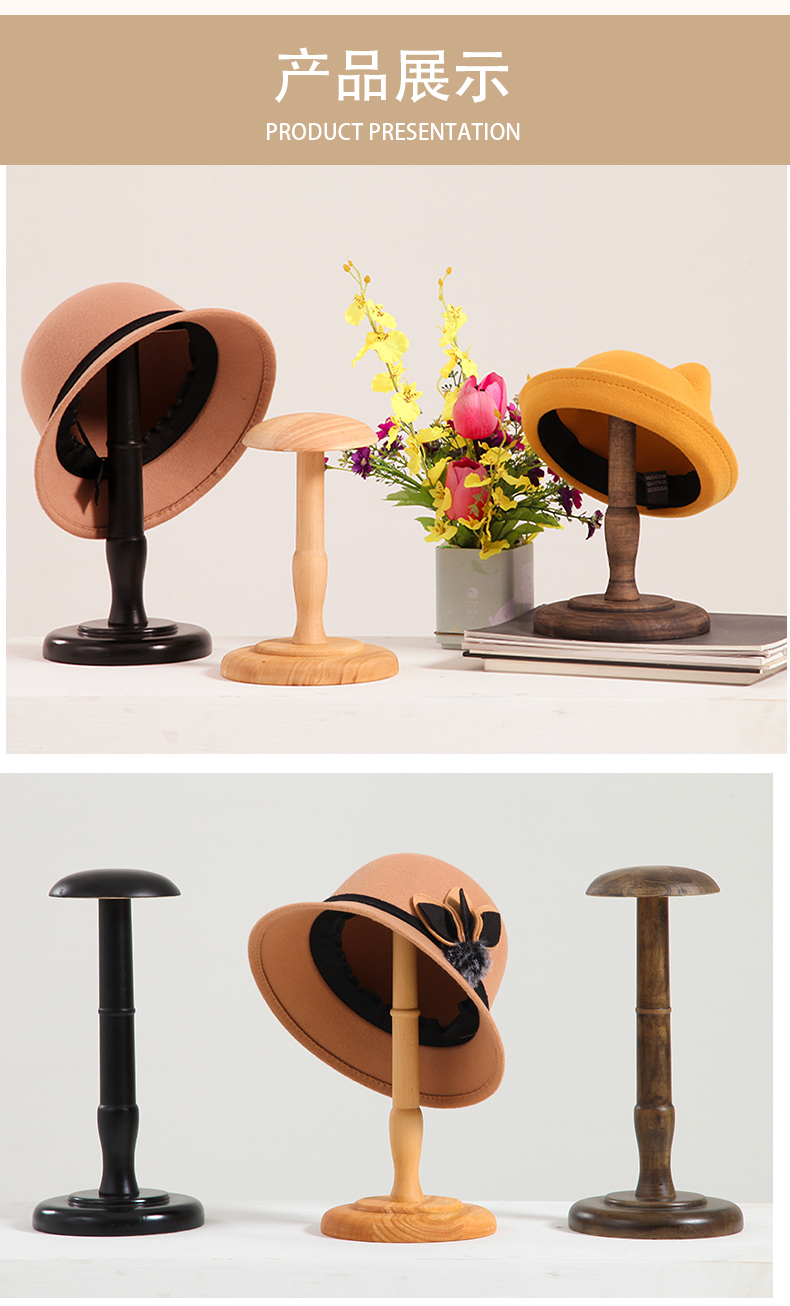 레트로 모자 스탠드 단단한 나무 데스크탑 모자 홀더 의류 매장 모자 디스플레이 스탠드 모자 디스플레이 디스플레이 소품 가발 생강 차