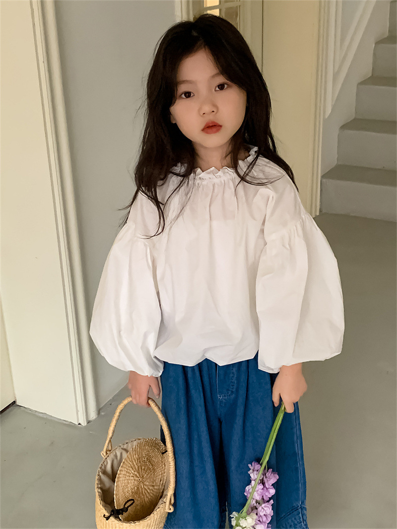 꽃과 여자 느슨한 청바지 2024 봄 새로운 어린이 아기 한국 유행 높은 허리 캐주얼 바지