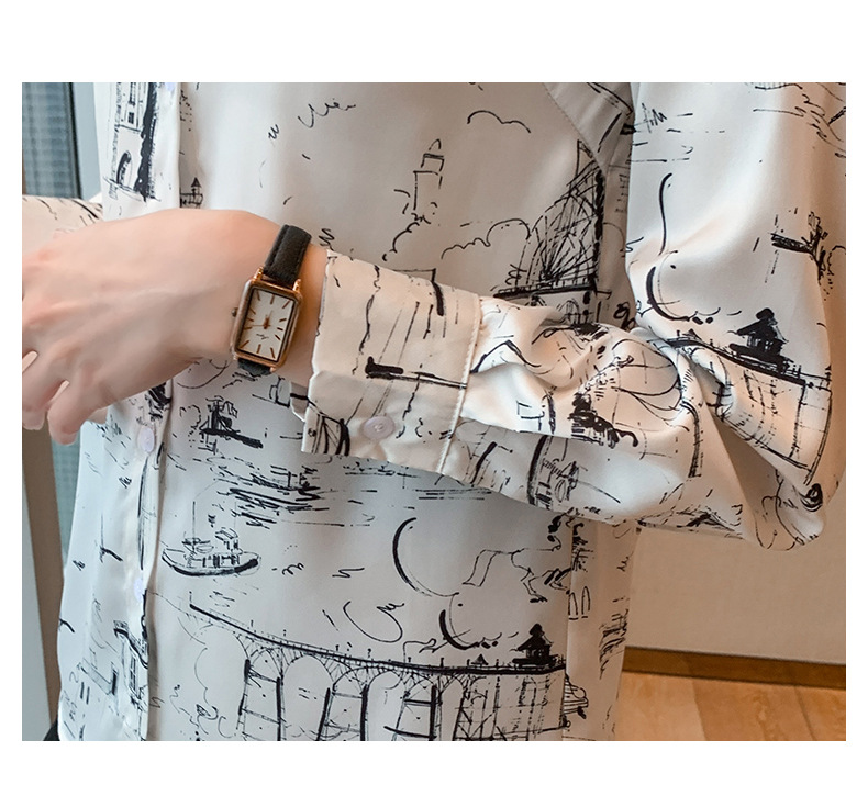 프린트 화이트 쉬폰 셔츠 여성용 초봄 2025년 신상 한국 스타일 다용도 루즈핏 슬림 셔츠 패셔너블 탑