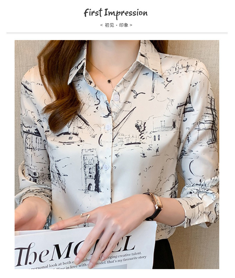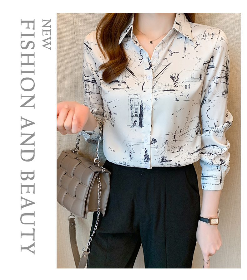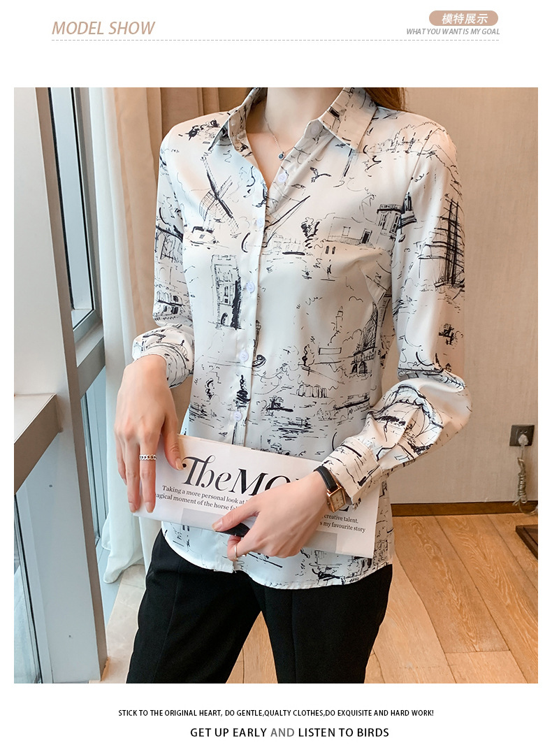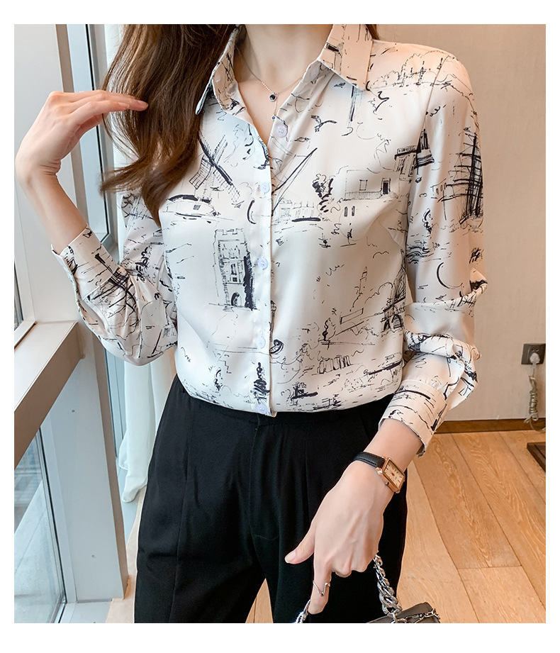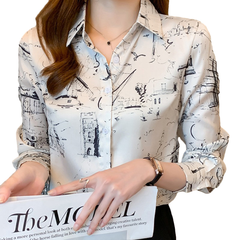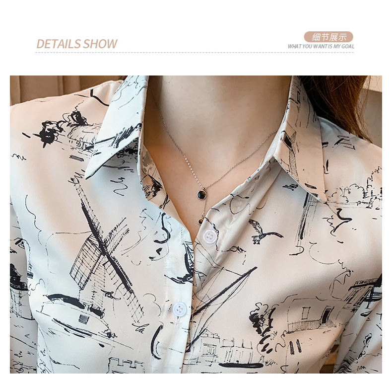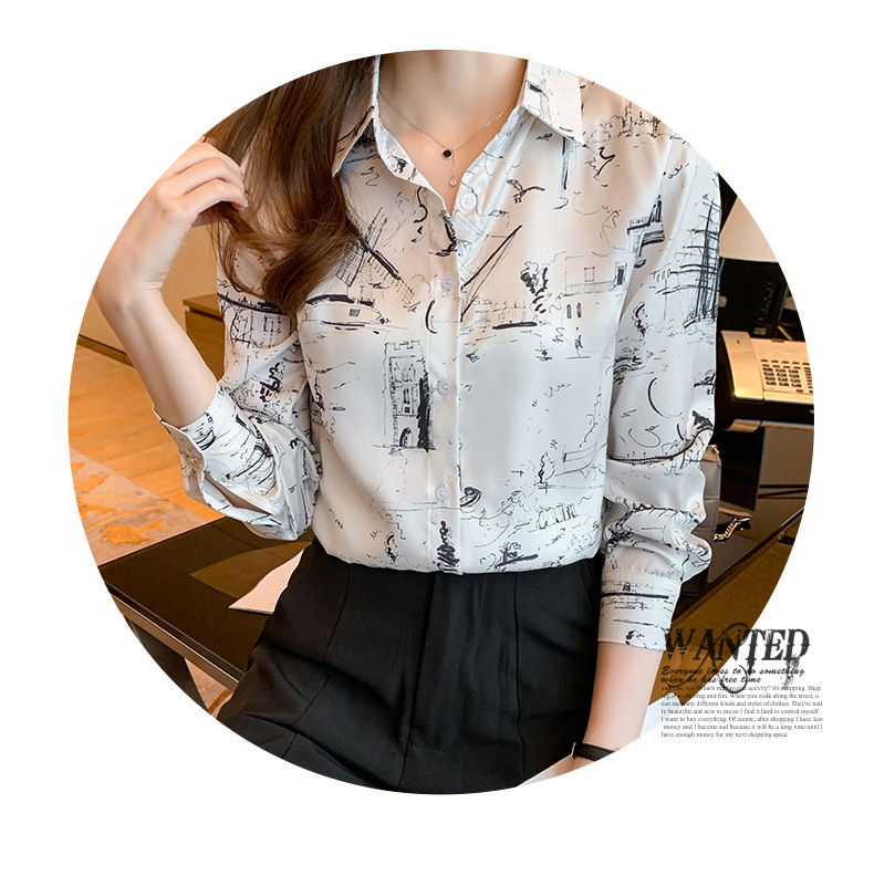 프린트 화이트 쉬폰 셔츠 여성용 초봄 2025년 신상 한국 스타일 다용도 루즈핏 슬림 셔츠 패셔너블 탑스토어 가기