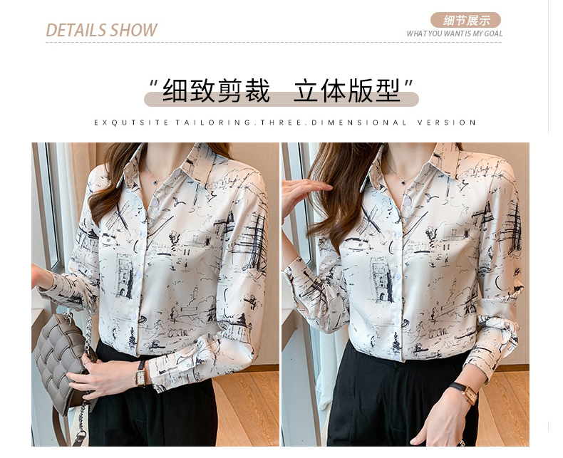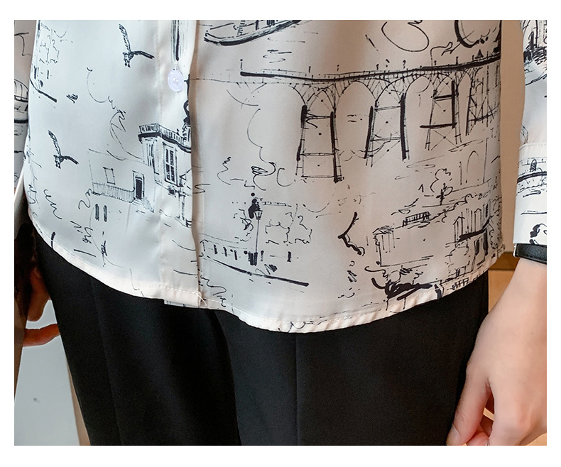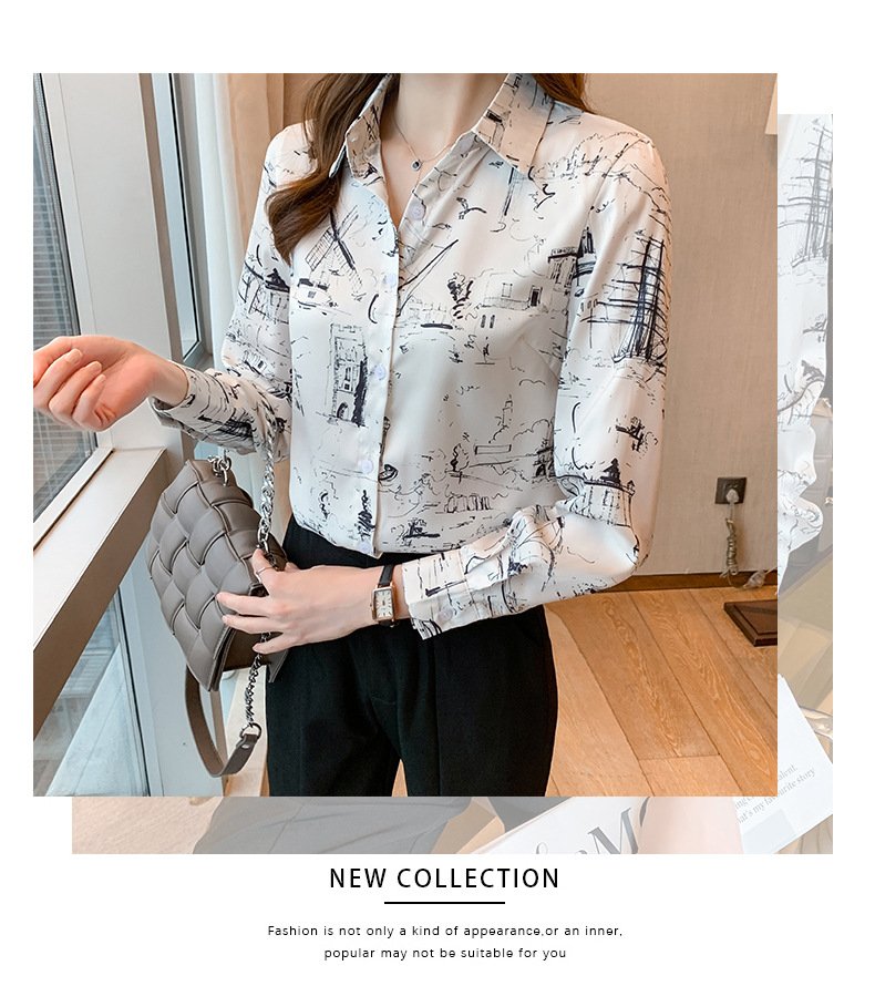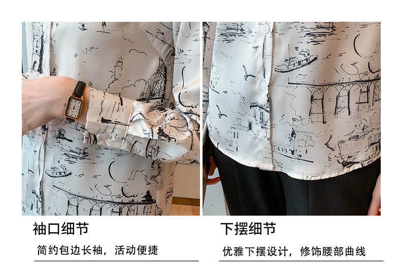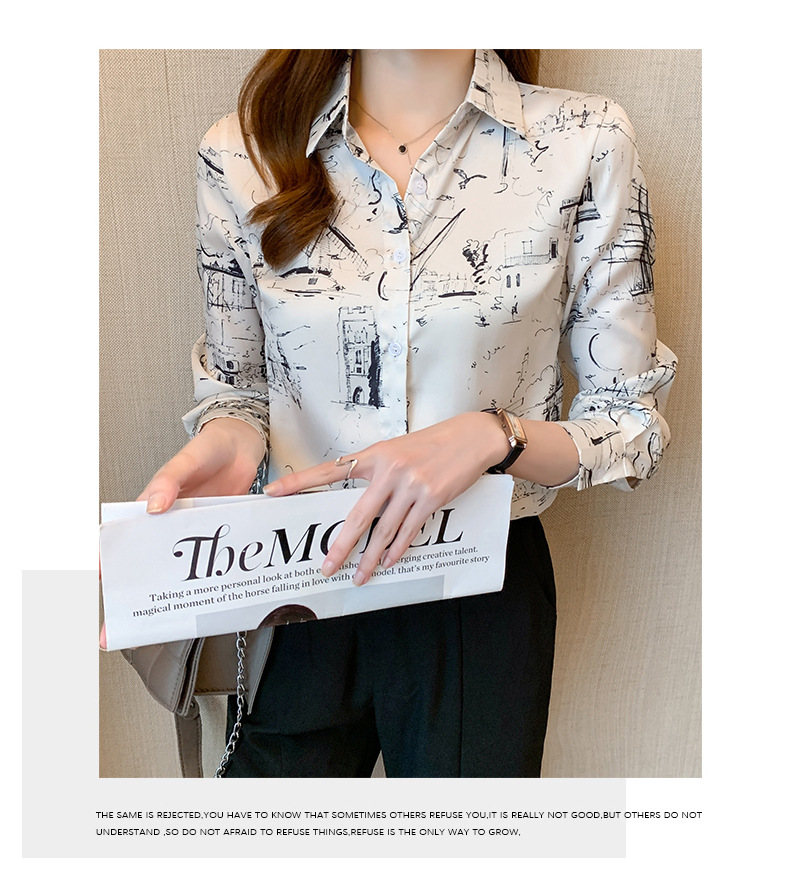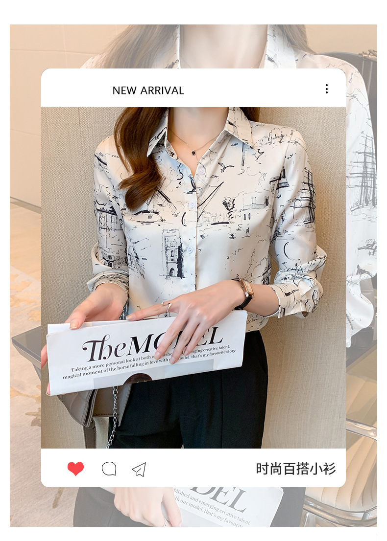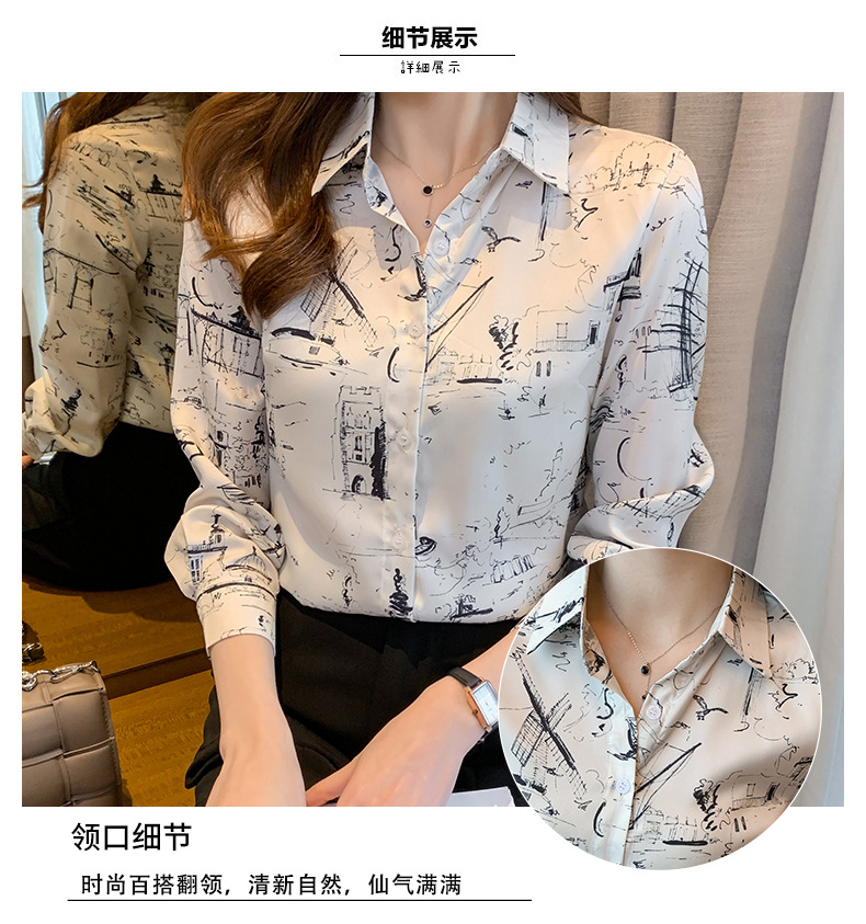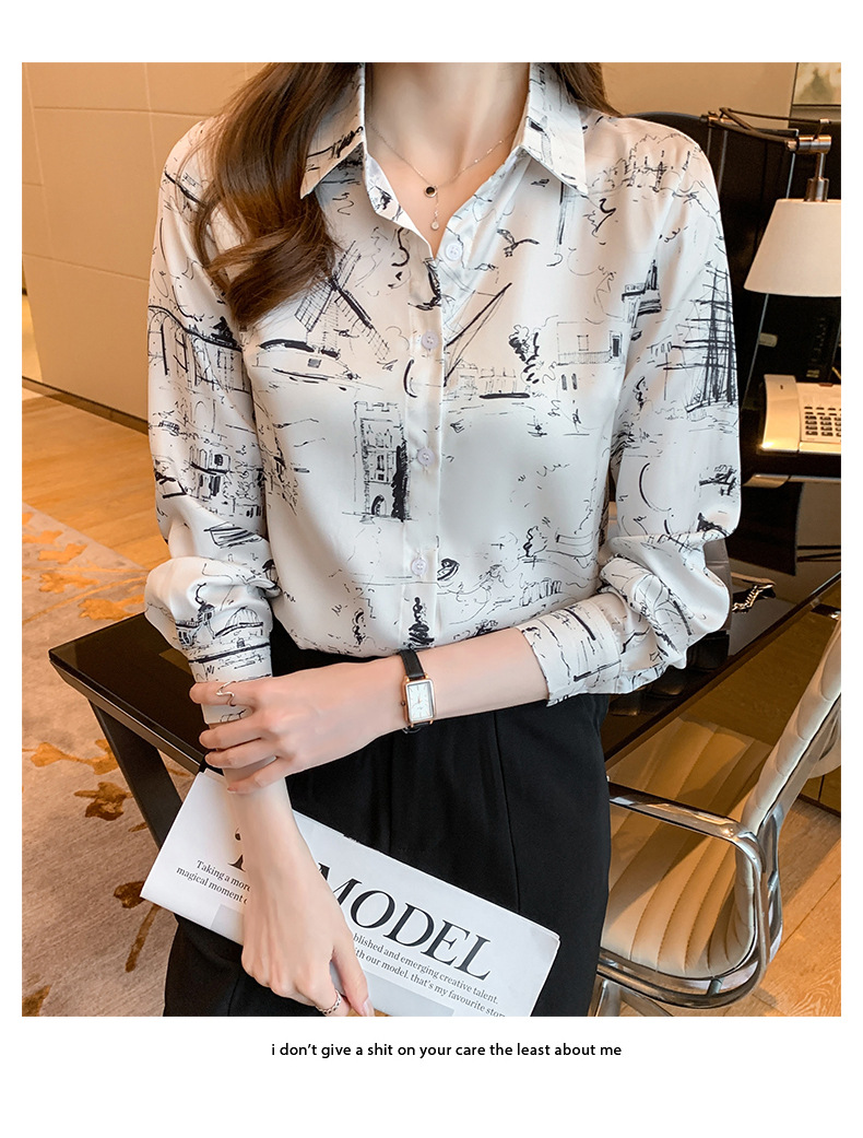 프린트 화이트 쉬폰 셔츠 여성용 초봄 2025년 신상 한국 스타일 다용도 루즈핏 슬림 셔츠 패셔너블 탑스토어 가기