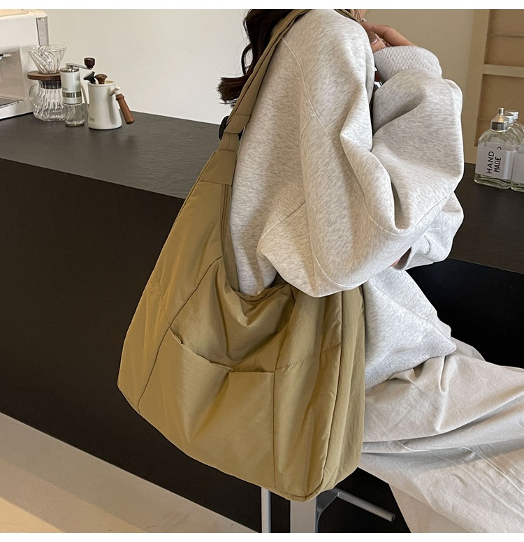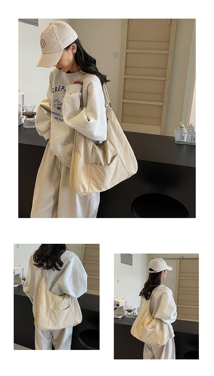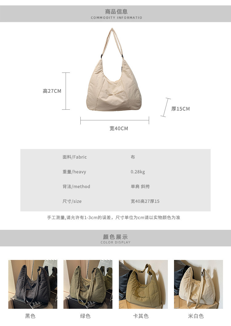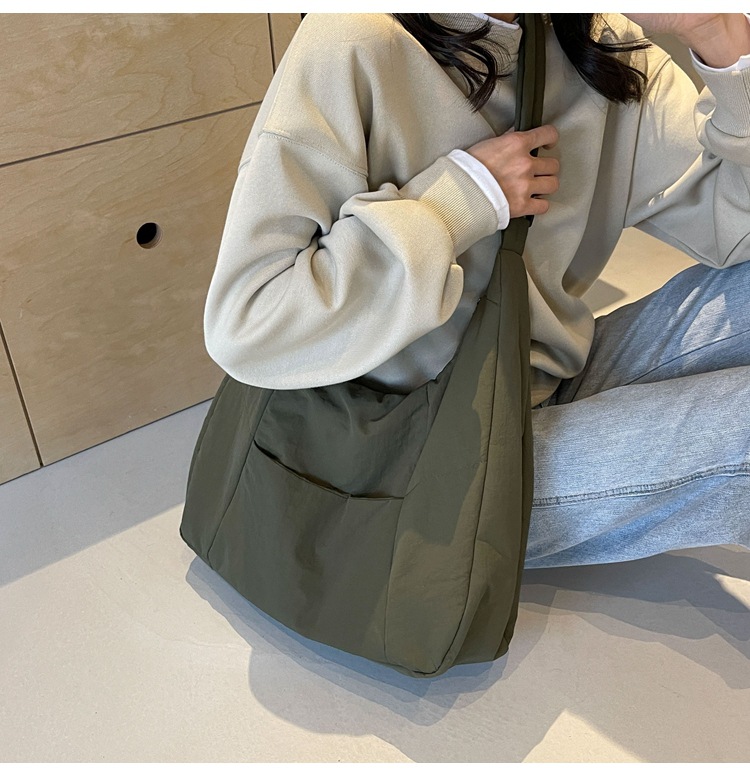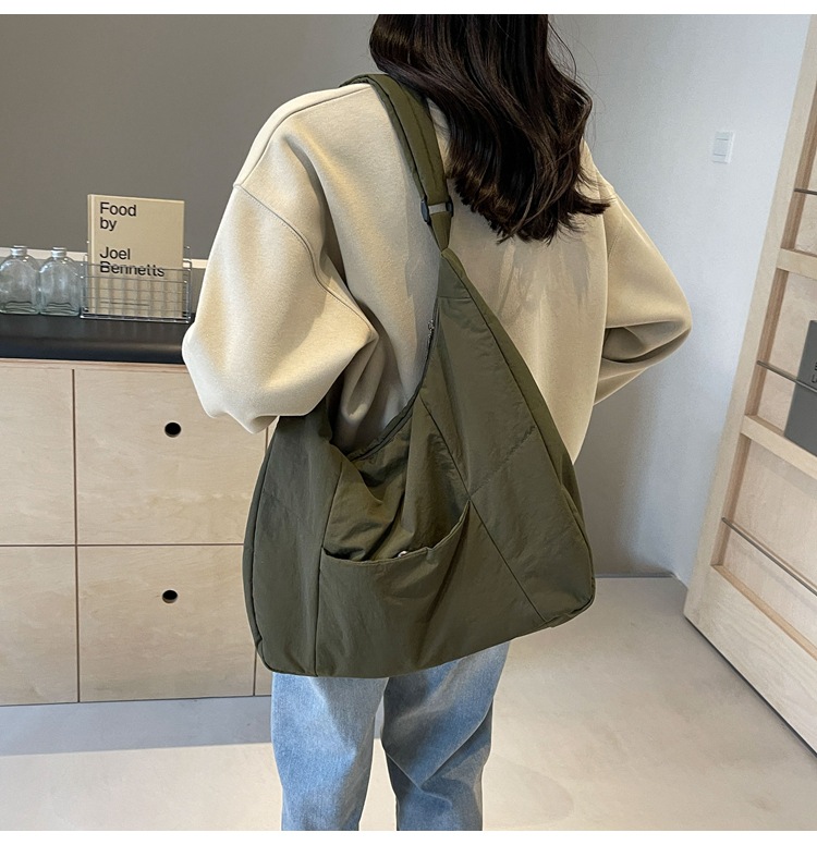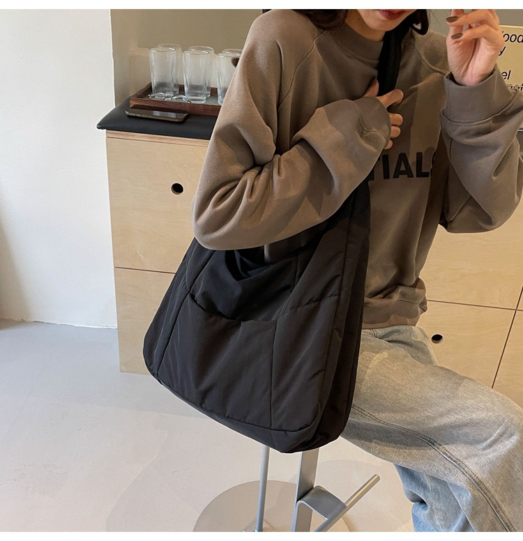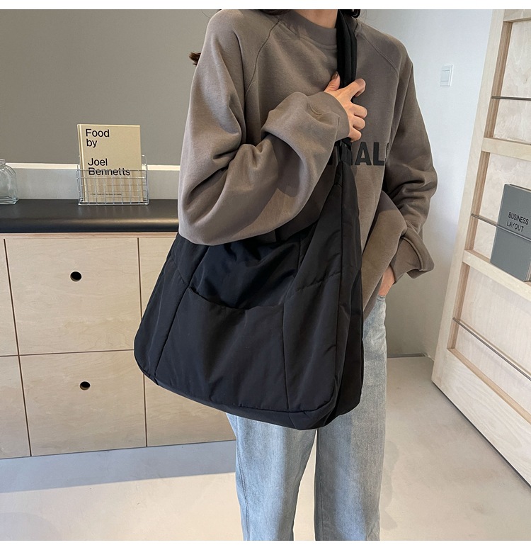 새로운 토트 백 여성 대학생 클래스 메신저 백 작업 통근 어깨 가방 나일론 천 가방 면화 옷 큰 가방스토어 가기