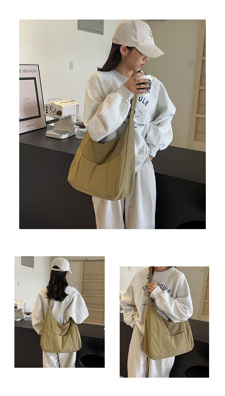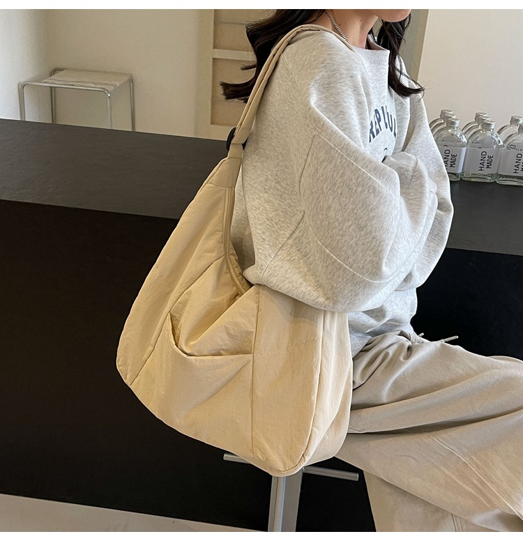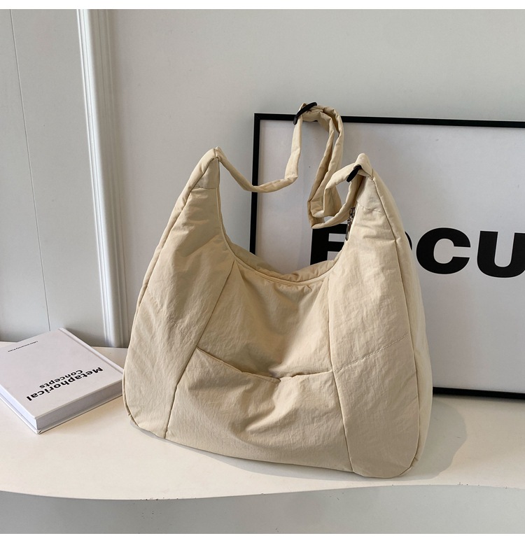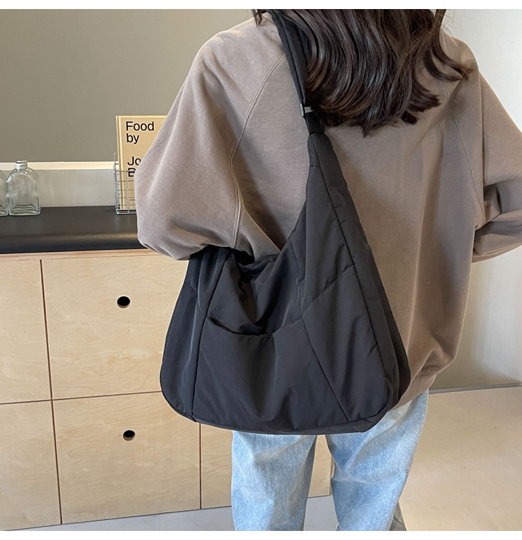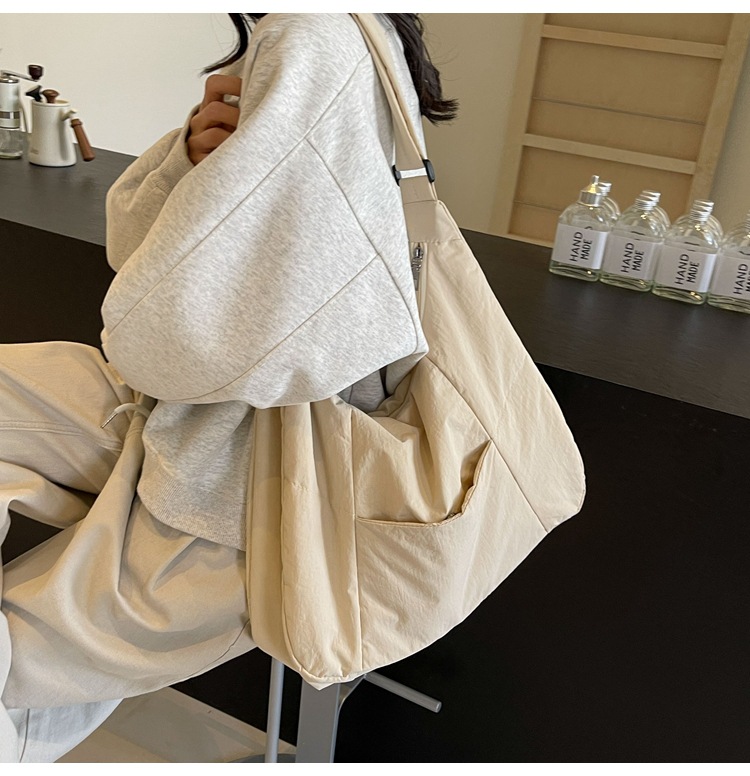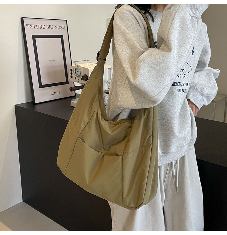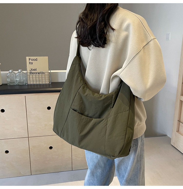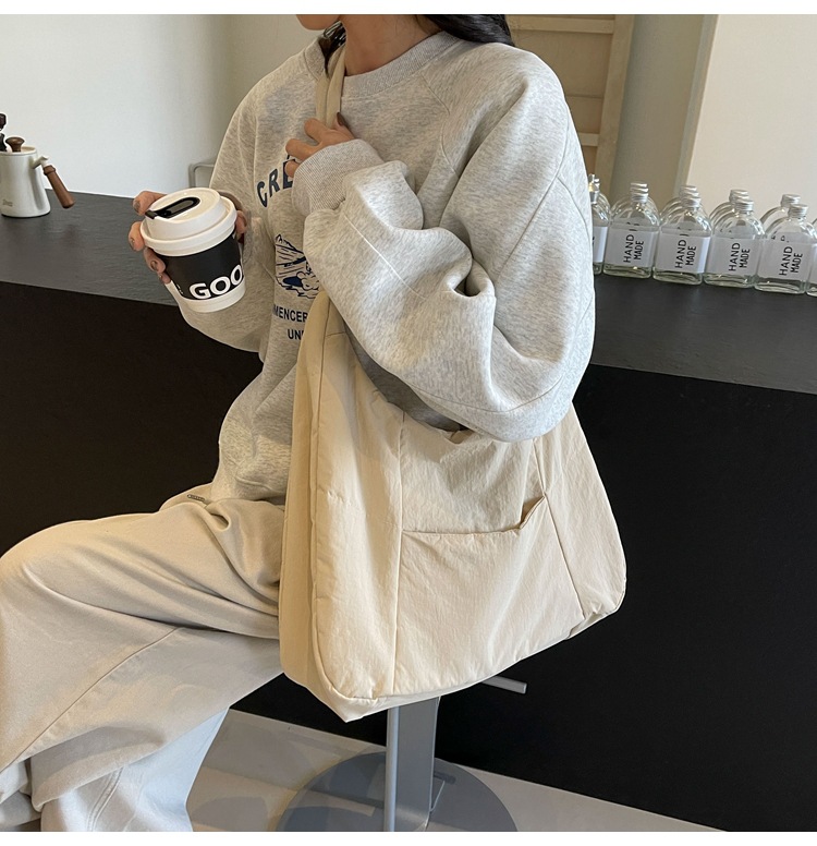 새로운 토트 백 여성 대학생 클래스 메신저 백 작업 통근 어깨 가방 나일론 천 가방 면화 옷 큰 가방스토어 가기