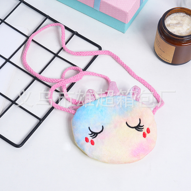 국경 간 공급 미니 화려한 봉제 숄더백 귀여운 만화 유니콘 동전 지갑 어린이 긴 로프 크로스 바디 백
