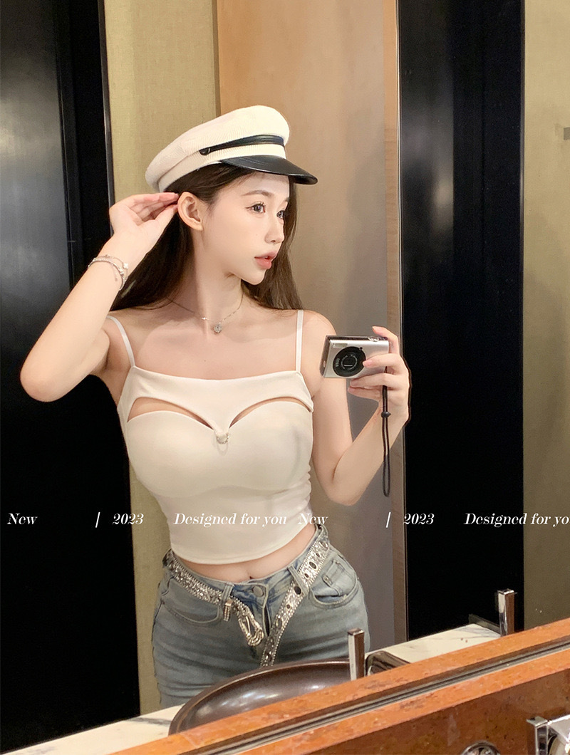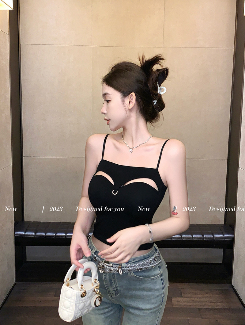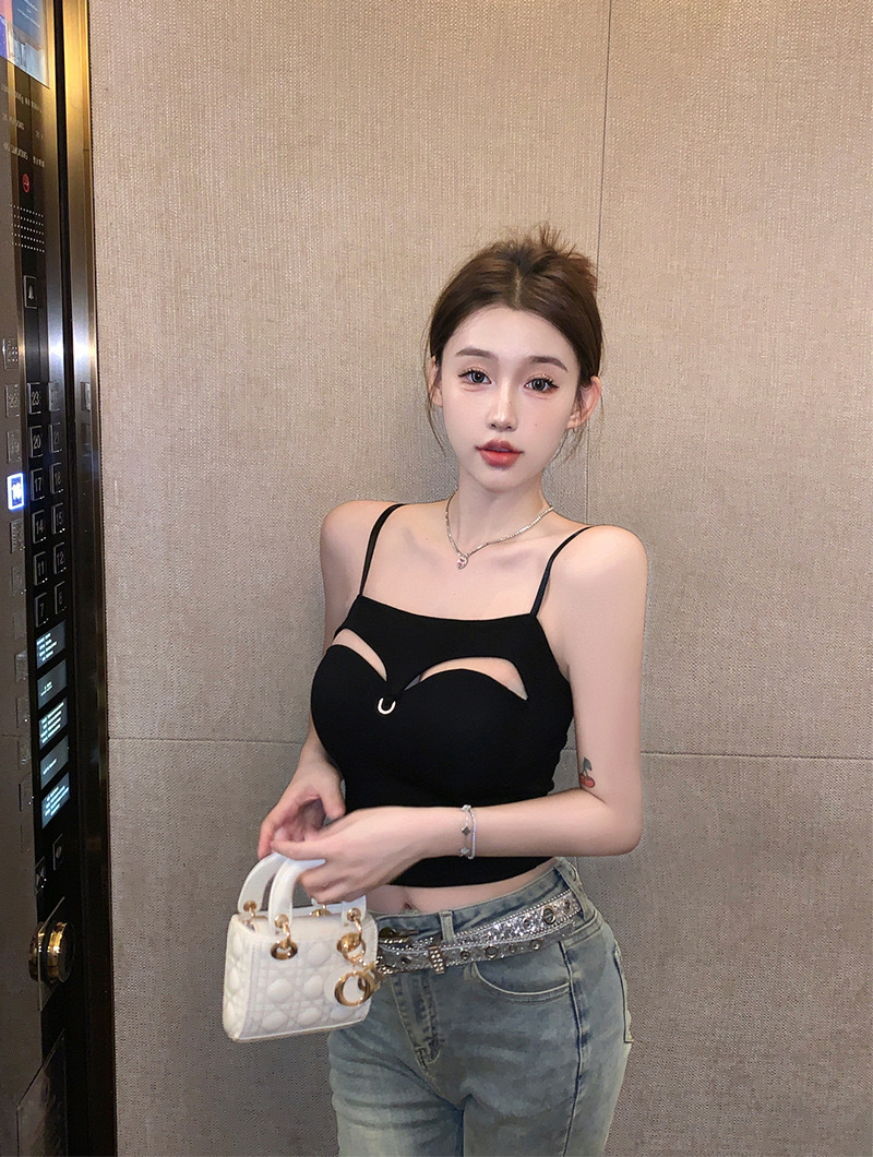섹시한 핫 걸 디자인 중공 슬링 백 여성 여름 새로운 순수 욕망 스타일 슬림 핏 노출 배꼽은 탑 패션 밖에서 착용 할 수 있습니다.스토어 가기