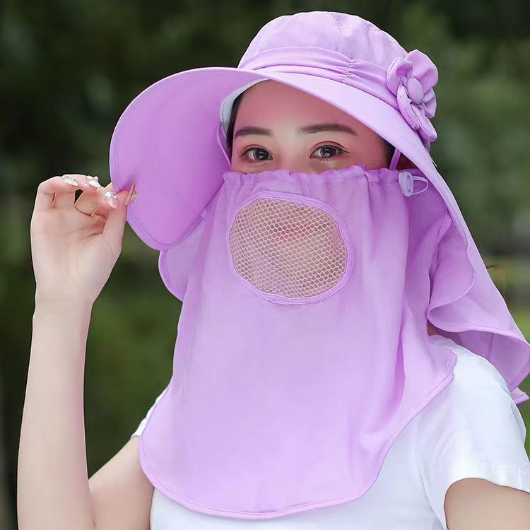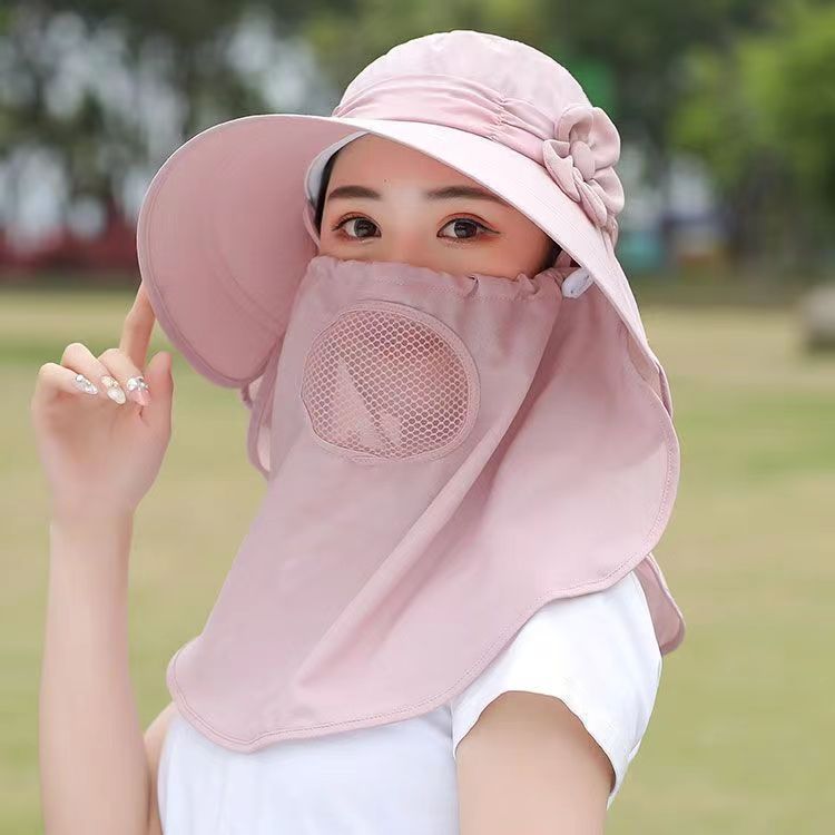 태양 모자 여성의 여름 마스크 커버 얼굴 태양 모자 큰 테두리 올 매치 멋진 모자 UV 차 따기 사이클링 태양 모자