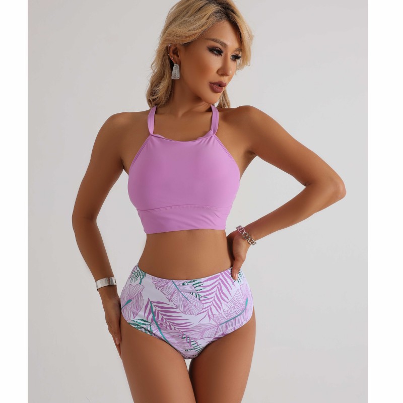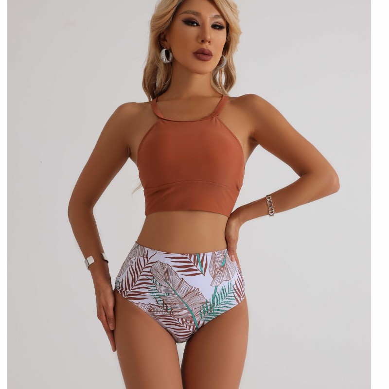 2024 새로운 유럽과 미국의 비키니 수영복 여성의 섹시한 단색 인쇄 스플릿 하이 허리 배 커버 온천 수영복스토어 가기