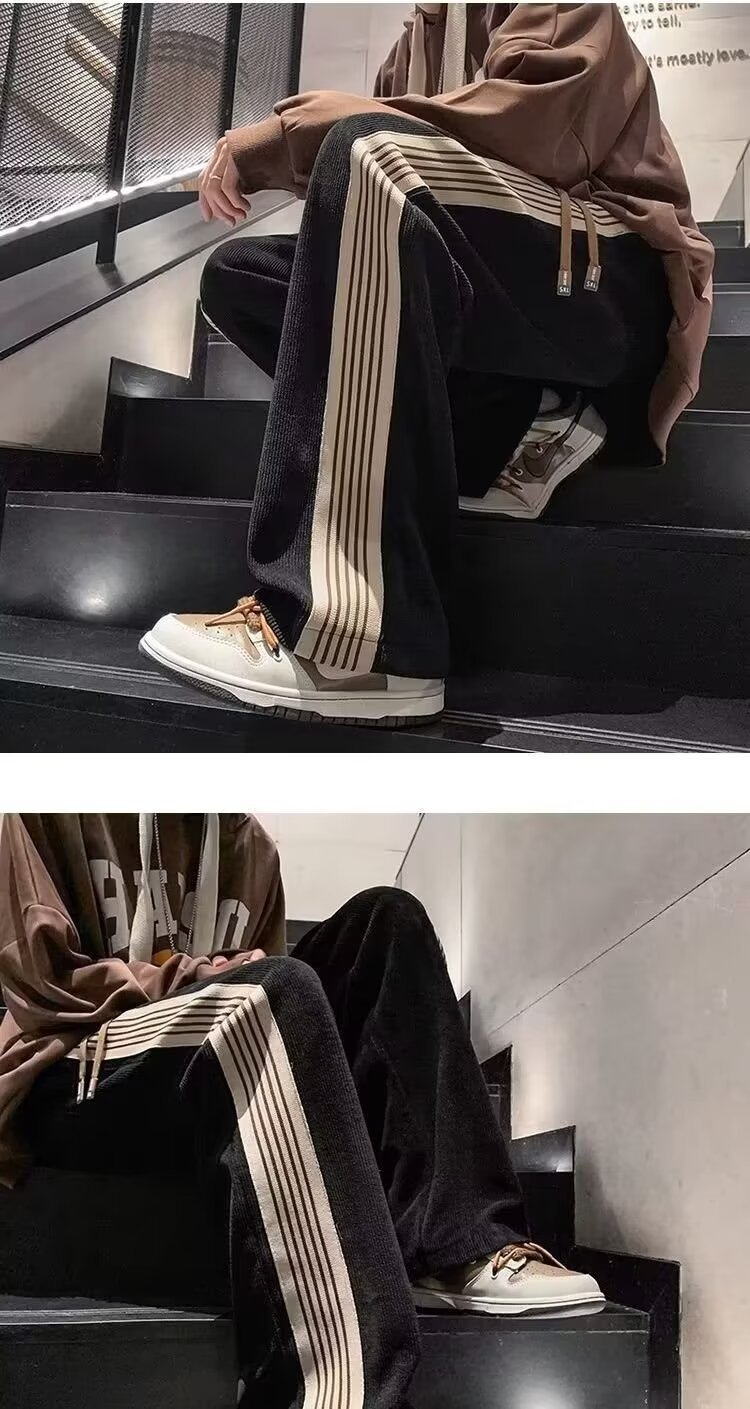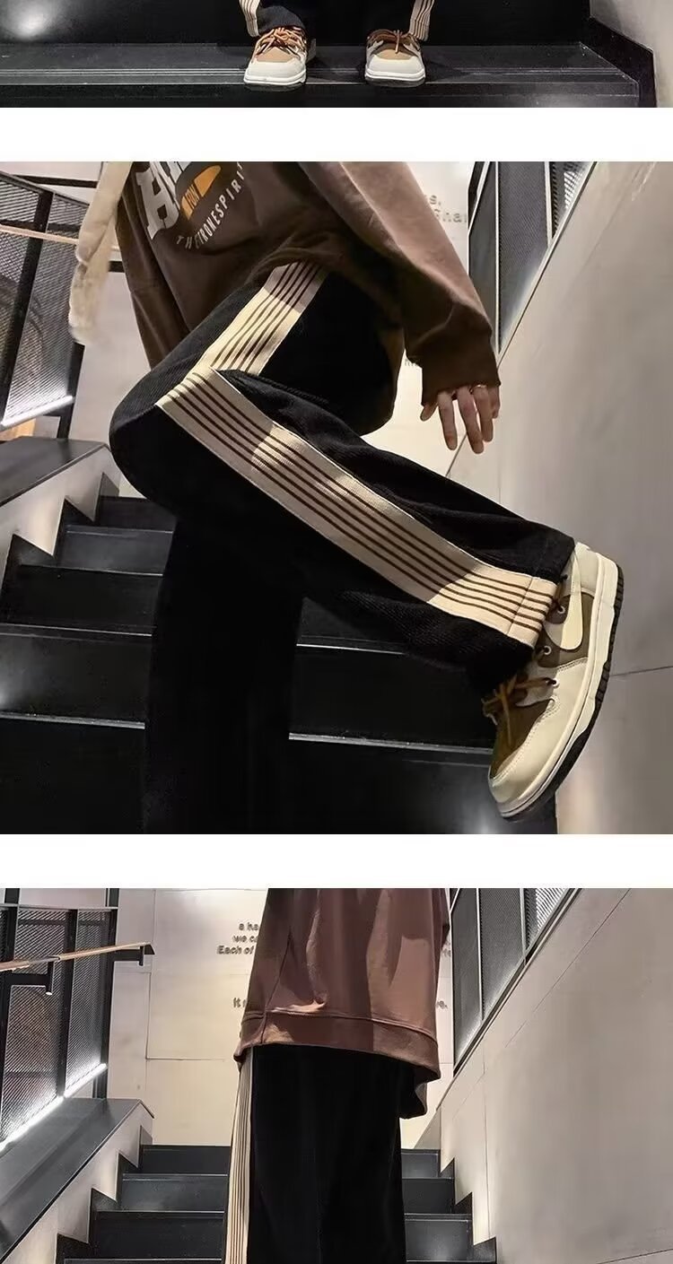 아메리칸 스타일 하이 스트리트 코듀로이 바지 남자 봄과 가을 느슨한 대형 스트레이트 가을 겨울 올매치 스트라이프 캐주얼 바지스토어 가기