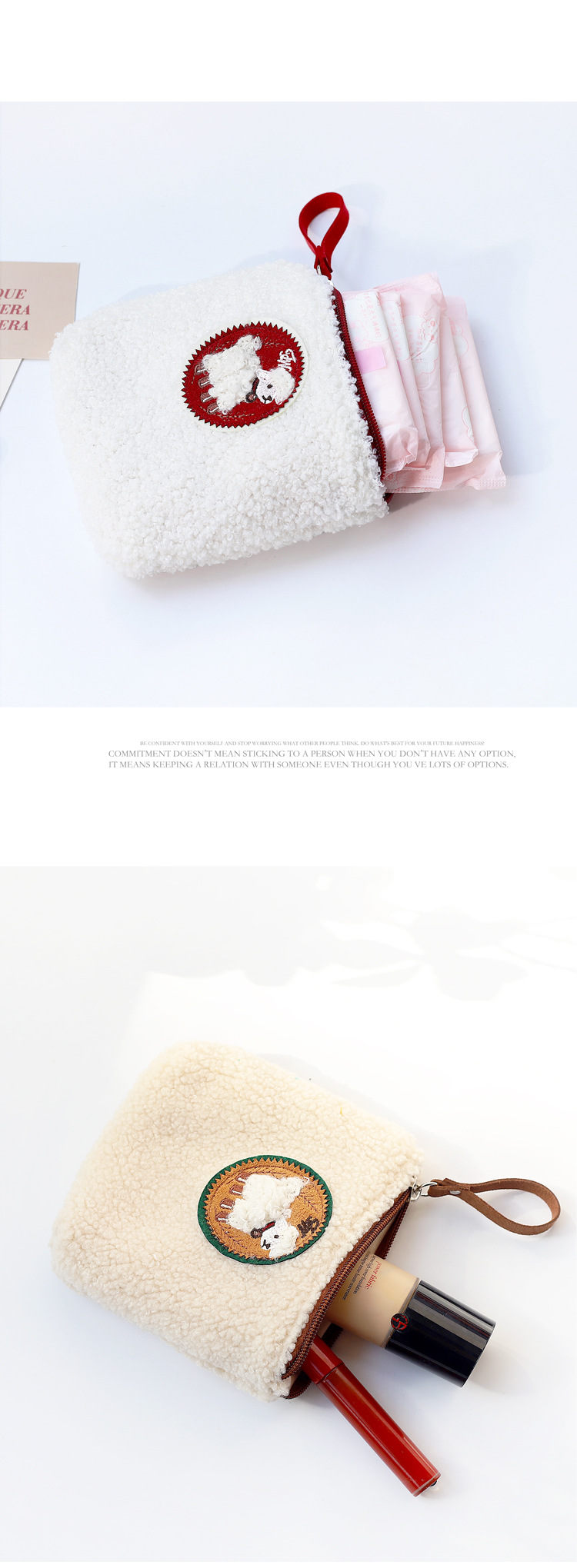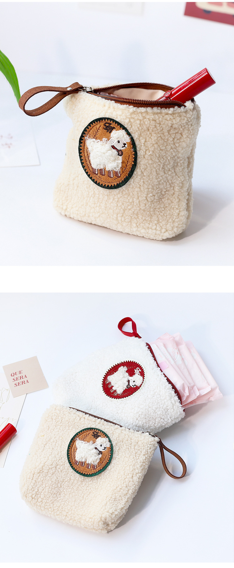 귀여운 작은 양 지퍼 화장품 가방 작은 휴대용 립스틱 생리대 저장 가방 간단한 학생 소녀
