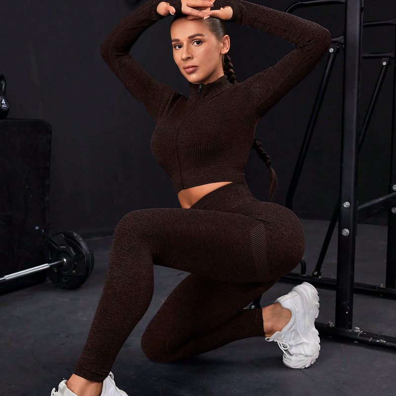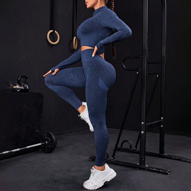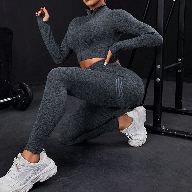 국경 간 요가 의류 가을과 겨울 세트 최고 지퍼 미끄럼 방지 긴 소매 손가락 보호 자켓 타이트 스포츠 요가 바지